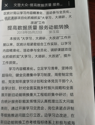 (一)加强领导体系建设。根据局领导班子人员和工作分工的变化情况,及时调整充实了文登区统计局政府信息公开工作领导小组成员,确保组织机构健全、工作人员到位、职责分工明确。