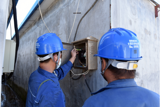 9月21日,文登公司工作人员到文登区泽库镇垠泽、海宽养殖场检查用电设施。