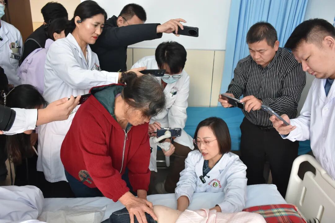 考虑到“六经学术体系针法”具有极强的临床实践性,传统的理论授课模式难以让学员充分掌握该疗法的精髓,医院创新教学形式,将包靠专家典型病例现场查房、疑难病例联合会诊、实操演示等关键环节,通过先进的技术手段全程转播至19楼会议室。这种沉浸式的教学模式,让学员仿佛置身于诊疗现场,能够清晰地观摩到诊疗的每一个细节和步骤,极大地提升了学习的直观性与有效性。
