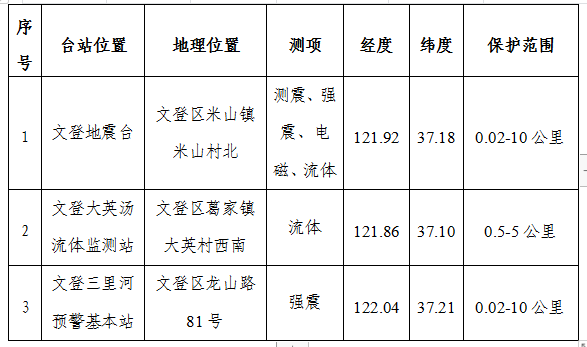 附件:威海市文登区地震监测台站分布及保护范围一览表