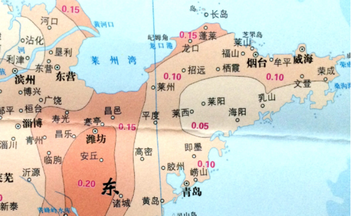 图5.1-1 中国地震动峰值加速度区划图 4.水文地质 本次规划河道地下水按其埋藏条件和含水层岩性不同,可分为第四系孔隙潜水和基岩裂隙水两种类型: (1)第四系孔隙潜水:主要埋藏于河床、漫滩及河流两岸一级阶地砂层中。 主要含水层为中粗砂或粗砾砂。根据前期勘察资料水文地质试验渗透系数一般在2.89×10-2~4.05×10-2cm/s,属强透水层。含水层厚度随基岩埋深不同变化较大,一般小于6.0m。地下水埋深一般为1.2~9.3m,年变幅2.0~3.0m。河床内水位埋深较浅,开挖0.5~1.0m即见到水面。地下水主要接受大气降水补给,枯水期地下水补给河水,汛期短时河水补给地下水。 (2)基岩裂隙水:主要埋藏在中生代燕山晚期艾山阶段二长花岗岩风化裂隙中,其富水性因裂隙发育程度及风化带厚度的不同而有所不同,总体是风化带厚度小,风化裂隙发育密集、细小,富水性较弱。地下水主要接受孔隙潜水及大气降水的补给,具有浅部循环、短途排泄的特点。基岩地层构成了勘察区地下水的隔水底板。根据前期勘察资料,基岩透水率q为0.55~6.77吕荣,属微弱透水层。据水质分析成果,场区地表河水的水化学类型主要为HCO3·SO4-Ca型水,判定场区地表河水对混凝土无腐蚀性,对钢结构及钢筋混凝土结构中钢筋均具弱腐蚀性。地下水化学类型主要为HCO3·SO4-Ca型水,判定地下水对混凝土无腐蚀性,对钢结构及钢筋混凝土结构中钢筋均具弱腐蚀性。 5.1.2 河道地质条件 根据《威海市文登区母猪河道口大桥至环海路大桥段治理工程岩土工程勘察报告》(威海地质工程勘察院,2020.04),在勘探深度范围内,土层由上到下叙述如下: 1 素填土(Q4ml):灰黄色-灰色,稍湿,松散~稍密,为堤身及外侧土。 2 砾砂(Q4al+pl):黄褐色,灰褐色,饱和,松散,颗粒不均匀。 3 淤泥质粉质粘土(Q4al+pl):灰褐色-灰黑色,软塑,湿-饱和,含腐殖质,切面稍有光泽,干强度及韧性中等,无摇震反应。 4 粉质粘土(Q4al+pl):黄褐色,稍湿-湿,可塑,土质较均匀,干强度及韧度中等。 5 中粗砂(Q4al+pl):灰褐色,黄褐色,松散~稍密,饱和,颗粒不均匀。 6 粉质粘土(Q4al+pl):灰褐色,湿,软塑,土质较均匀,干强度及韧度中等。 7 粗砾砂(Q4al+pl):黄褐色,稍密~中密,饱和,主要矿物成分为长石、石英。 河道下伏基岩主要为中生代二长花岗岩,黄褐色,灰白色,中粗粒花岗结构,块状构造,矿物成份以长石、石英及黑云母为主,岩体风化强烈,顶部芯呈砾砂状,向下渐变块状、碎块状,锤击易碎,裂隙发育。 5.1.3 砂石特征组成分析 根据《威海市文登区母猪河道口大桥至环海路大桥段治理工程岩土工程勘察报告》(威海地质工程勘察院,2020.04),本次母猪河规划可采河段分布地层有第四系和基岩,基岩以中生代燕山晚期艾山阶段二长花岗岩为主,其砂石特征组成具体分述如下: 1 素填土(Q4ml):松散~稍密,为堤身及外侧土,主要以耕土、粉细砂、粘性土为主,密实度不均匀,表层含植物根系,均匀性较差,回填时间约10年,场区普遍分布,一般厚度:1.50~7.50m,平均4.37m;层底标高:-2.64~3.82m,平均1.04m;层底埋深:1.50~7.50m,平均4.37m。 2 砾砂(Q4al+pl):局部夹杂少量淤泥,混有少量角砾,该层场区局域分布,厚度:0.50~5.00m,平均2.28m;层底标高:-5.15~0.98m,平均-2.28m;层底埋深:0.50~6.70m,平均 2.75m。 4 粉质粘土(Q4al+pl):局部钻孔内夹杂少量砂粒,厚度:1.10~6.20m,平均3.24m;层底标高:-5.67~1.57m,平均-1.69m;层底埋深:1.50~12.70m,平均7.66m。 5 中粗砂(Q4al+pl):松散~稍密,饱和,颗粒不均匀,局部夹杂少量粘性土颗粒,下部可见少量角砾。该层在大多数场区内普遍分布,厚度:1.10~7.40m,平均4.42m;层底标高:-12.05~-1.89m,平均-5.90m;层底埋深:3.80~13.00m,平均9.34m。 7 粗砾砂(Q4al+pl):稍密~中密,饱和,主要矿物成分为长石、石英,分选较差,磨圆差,含直径0.5-2cm的砾石,约占10~20%。该层在场区大部分场区分布,厚度:0.80~8.60m,平均3.25m;层底标高:-11.43~-2.12m,平均-7.58m;层底埋深:7.20~18.60m,平均12.06m。