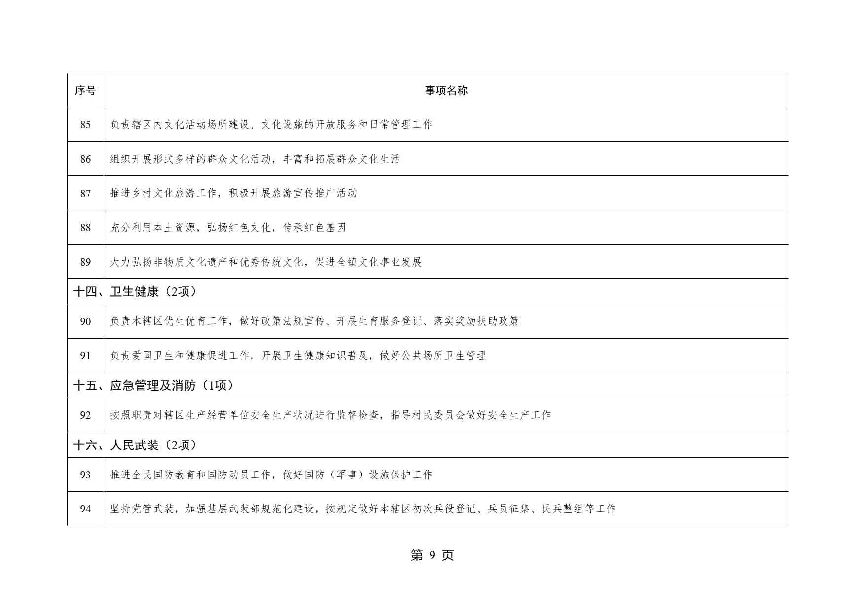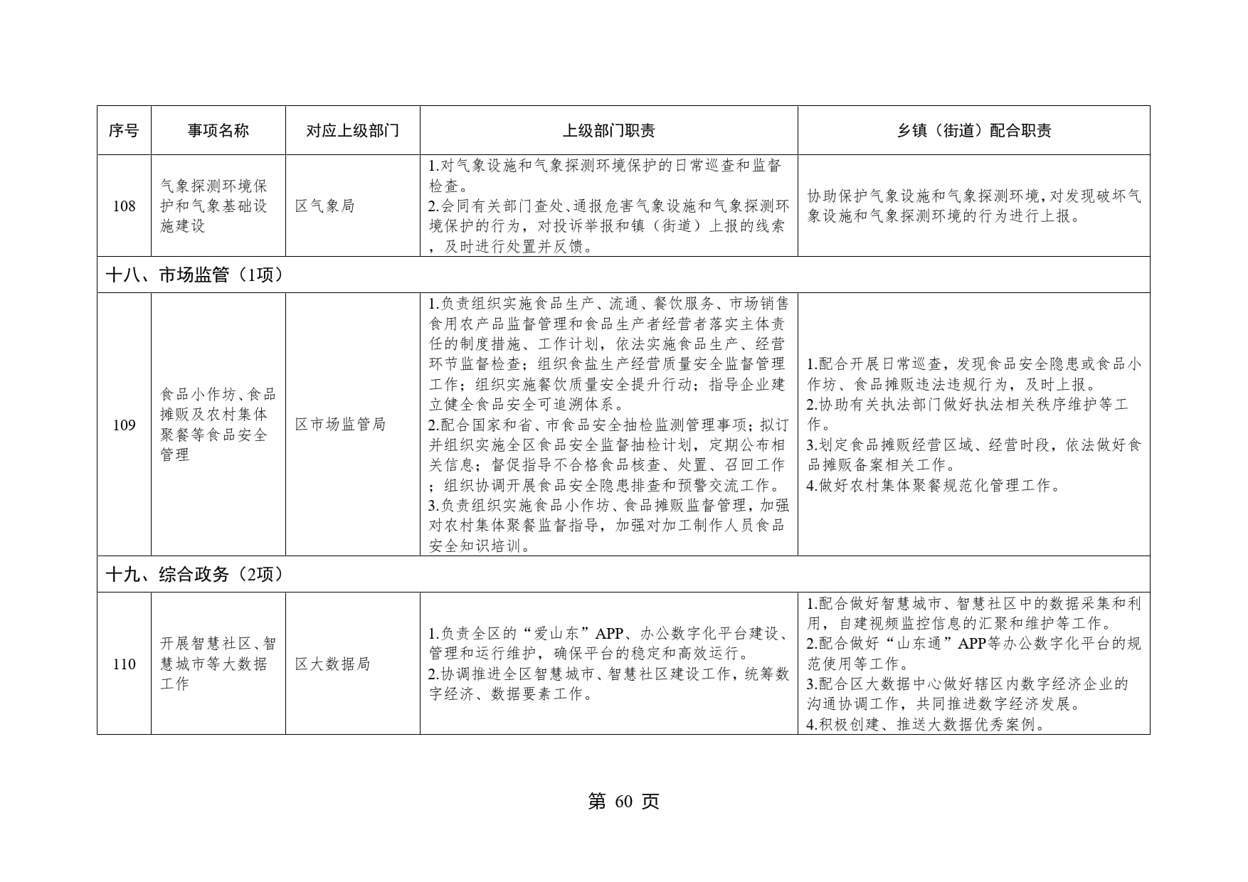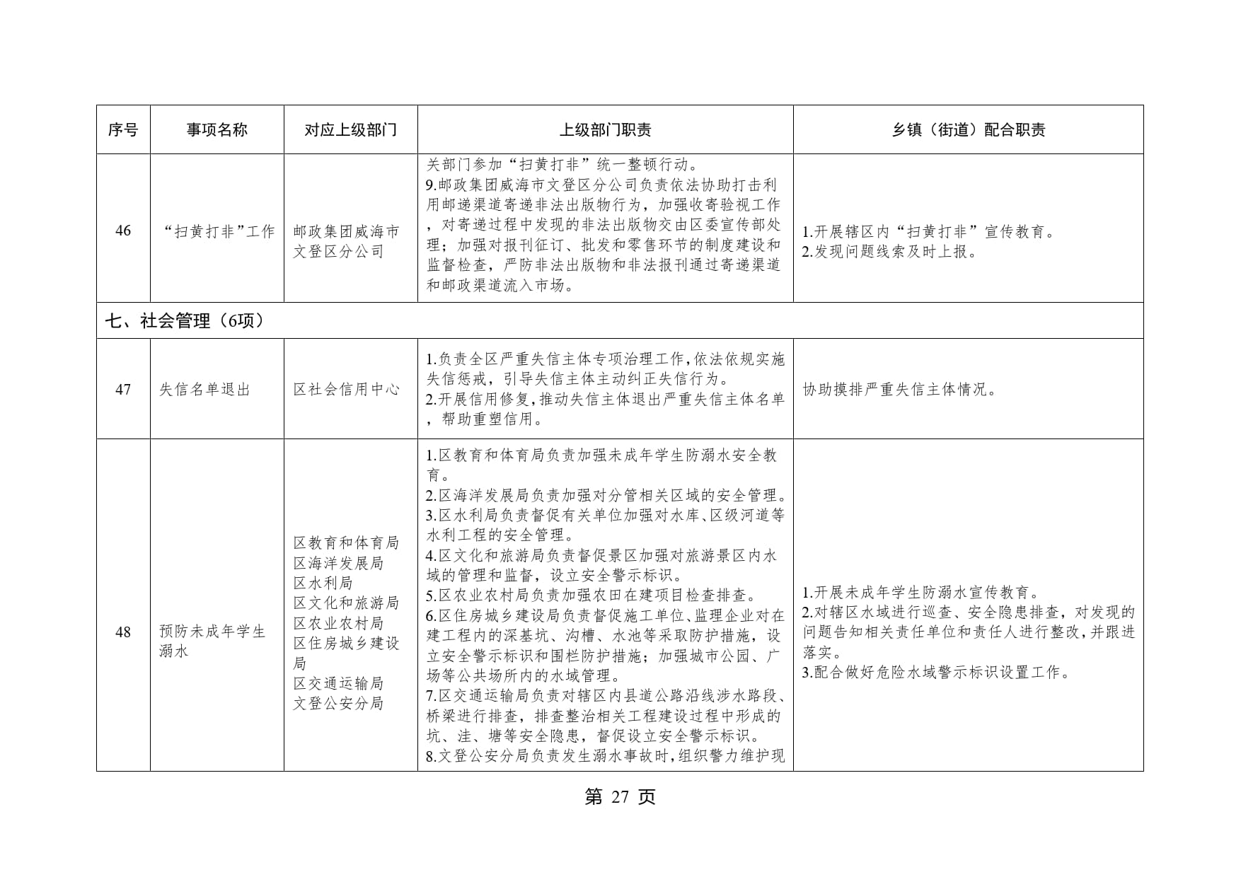 山东省威海市文登区高村镇履行职责事项清单