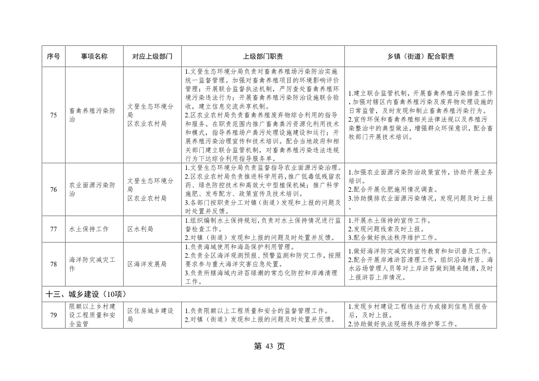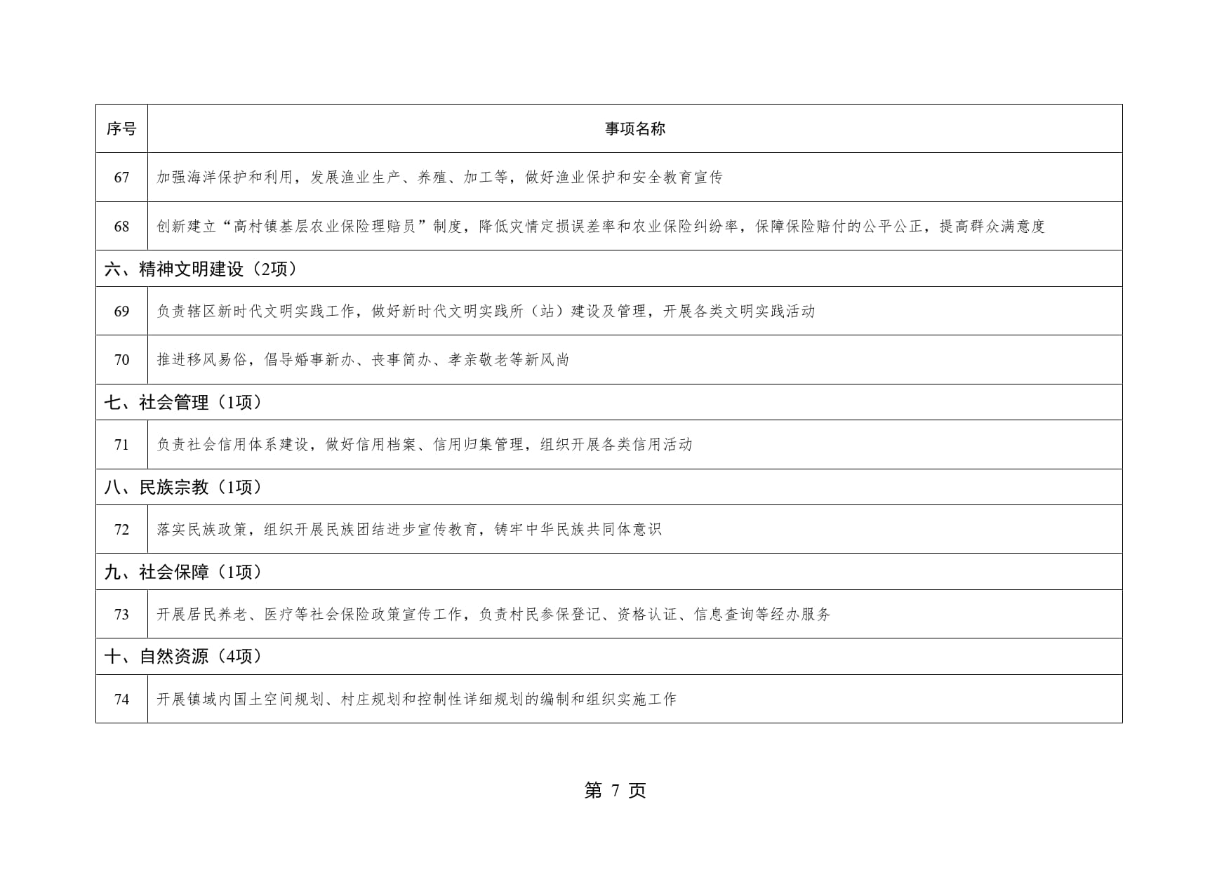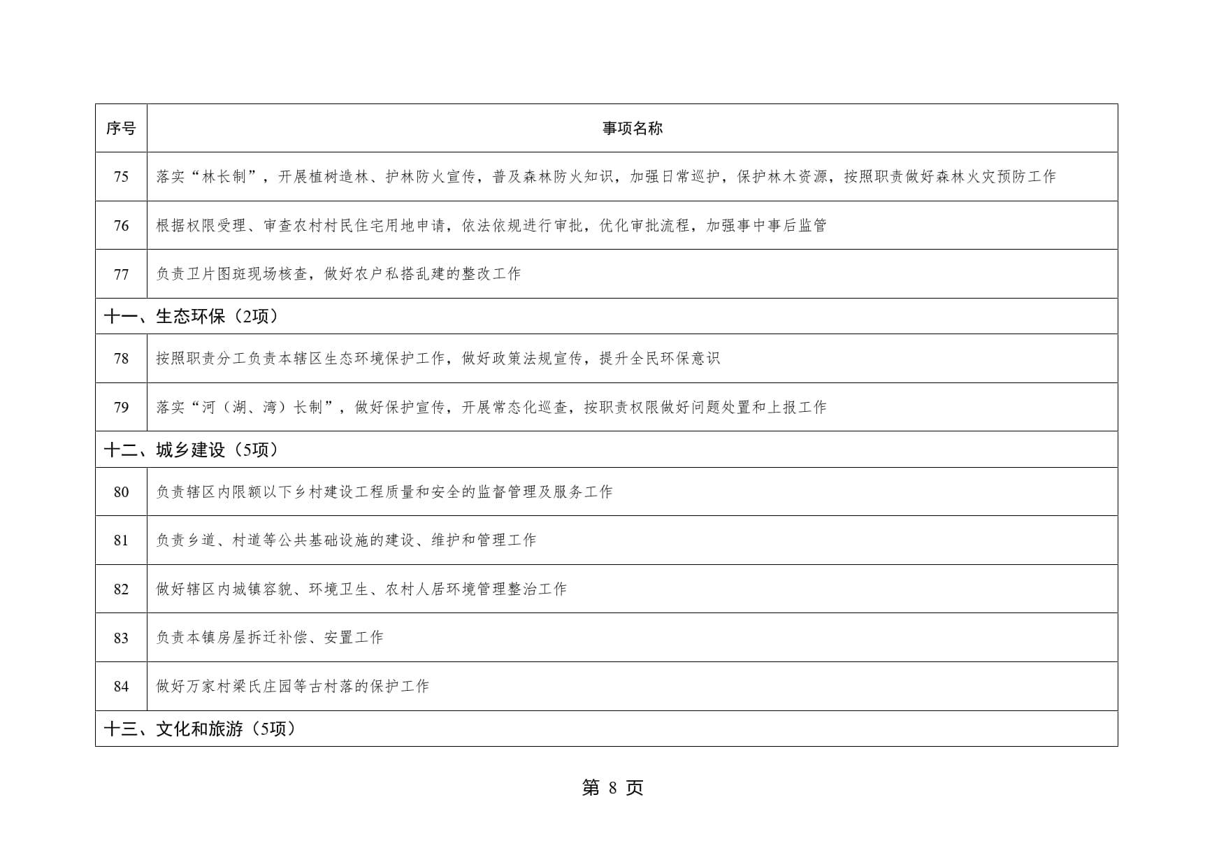 山东省威海市文登区高村镇履行职责事项清单