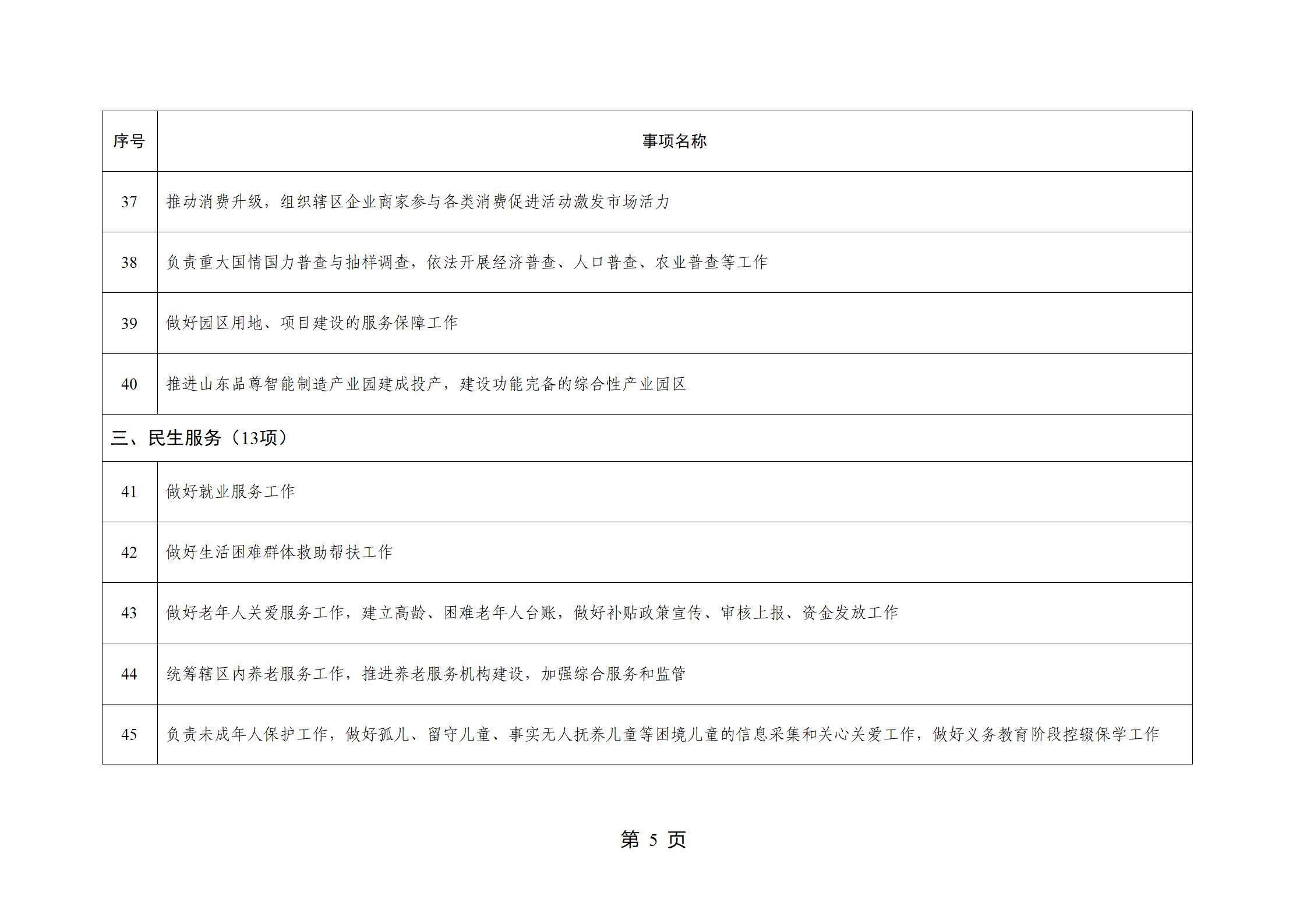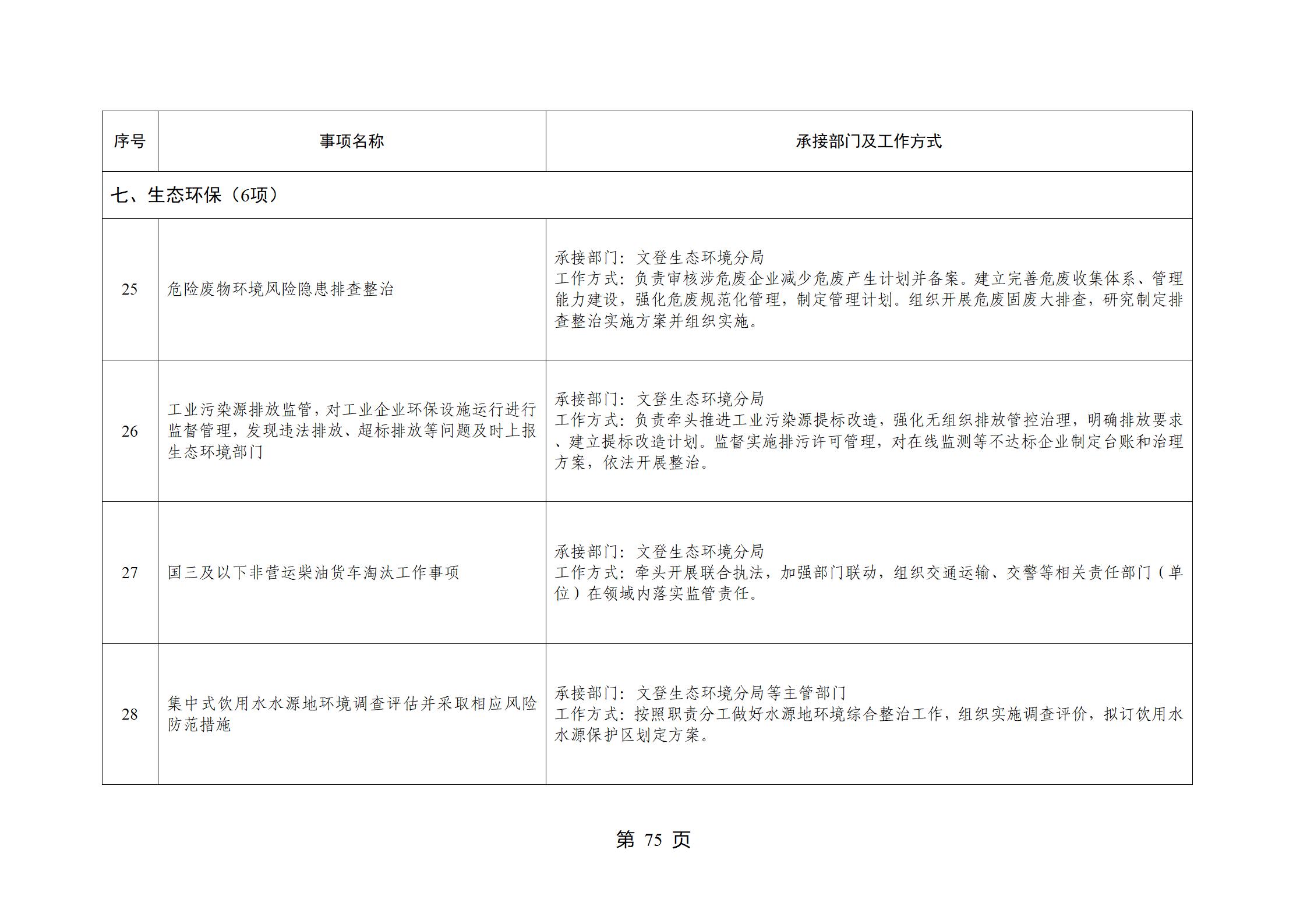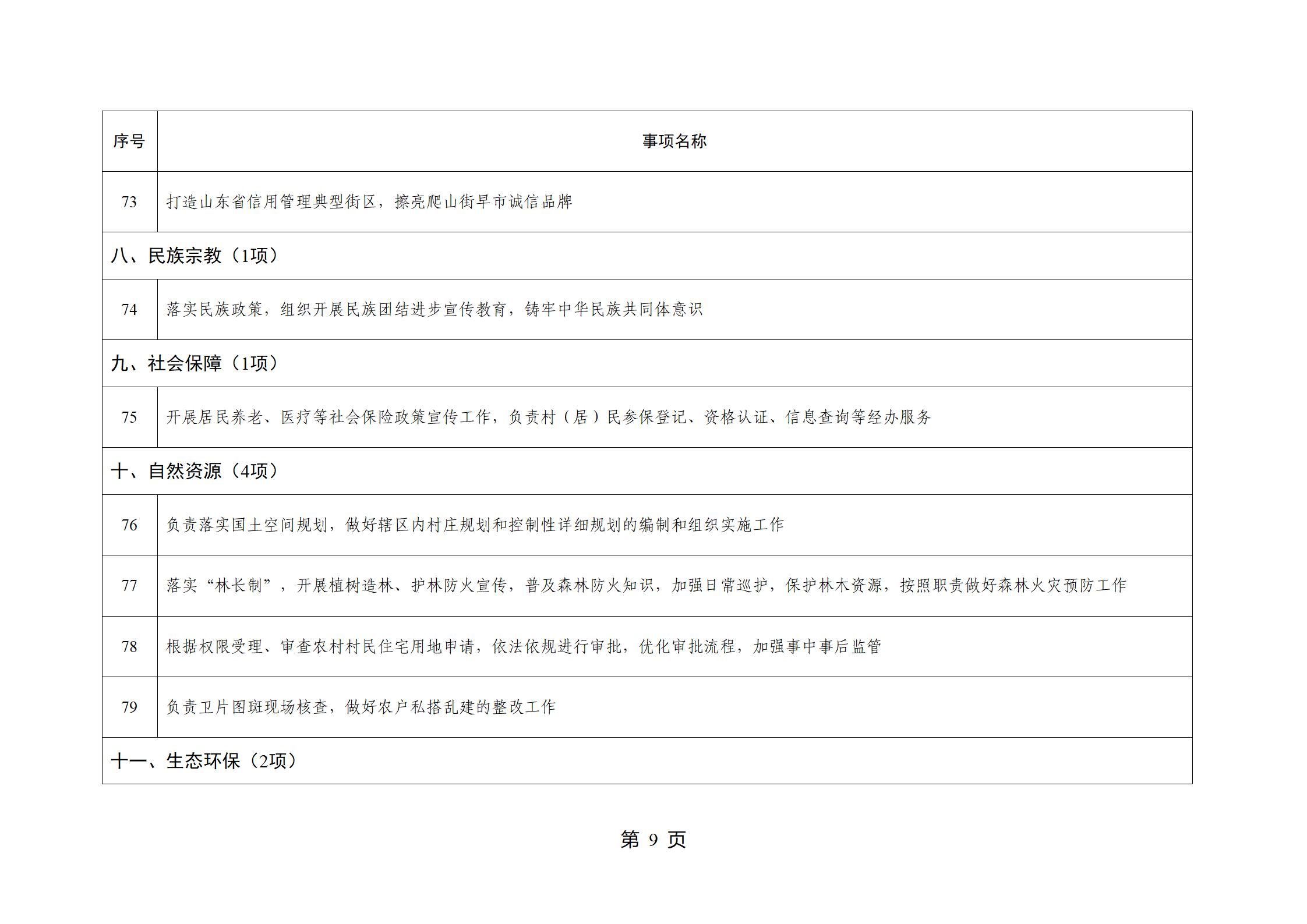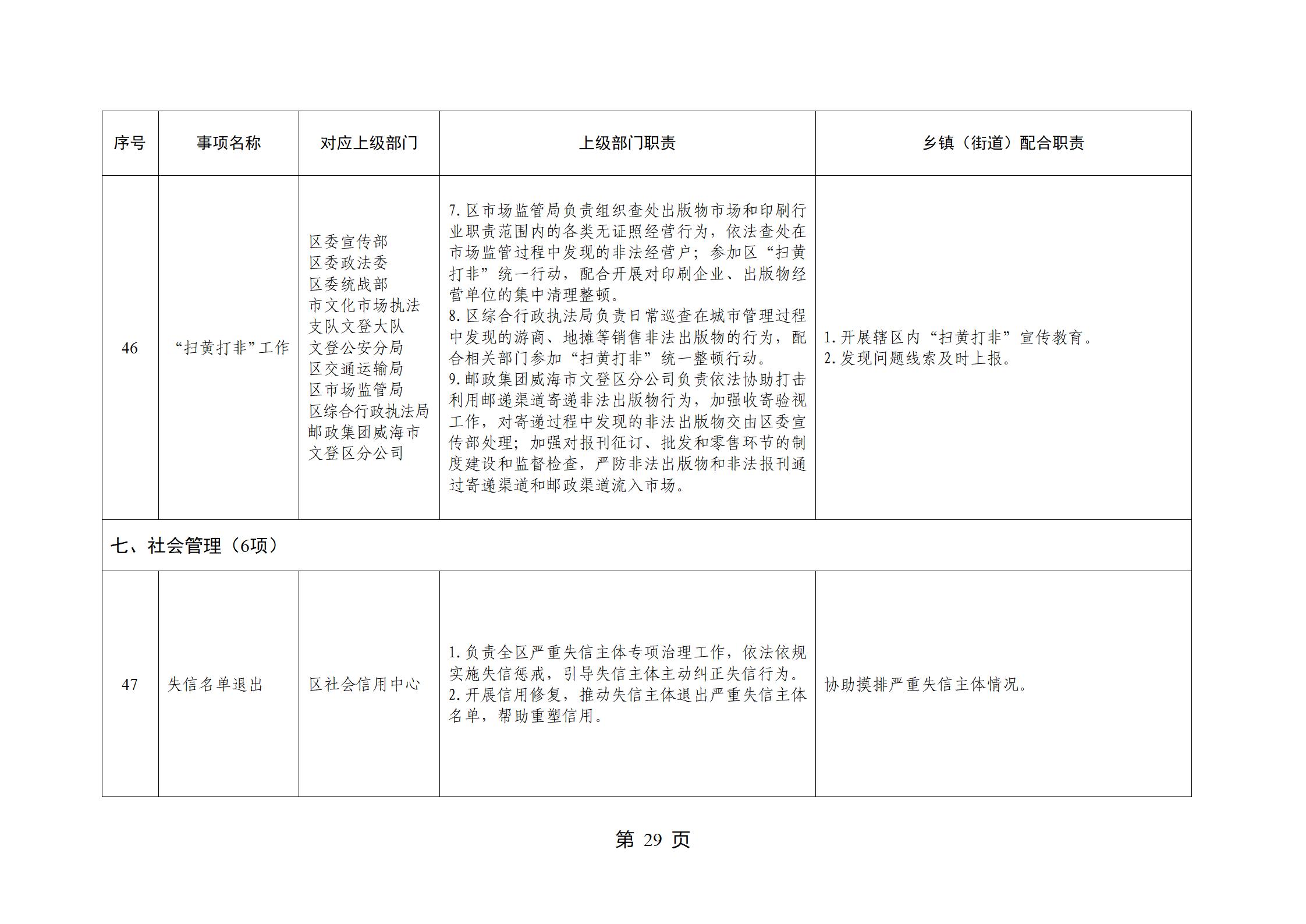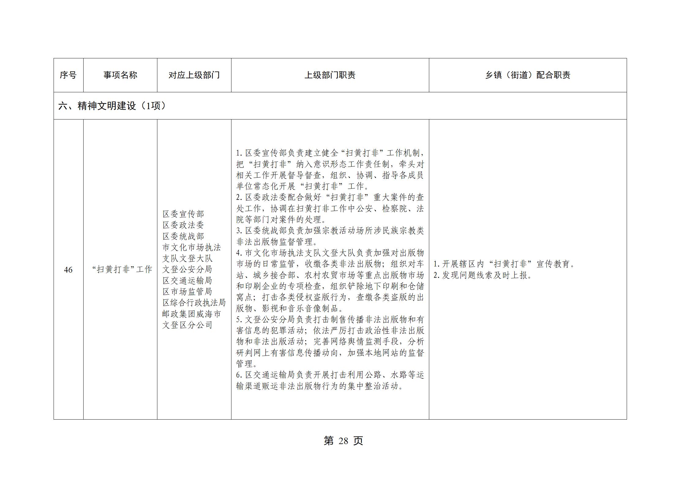 山东省威海市文登区环山街道履行职责事项清单
