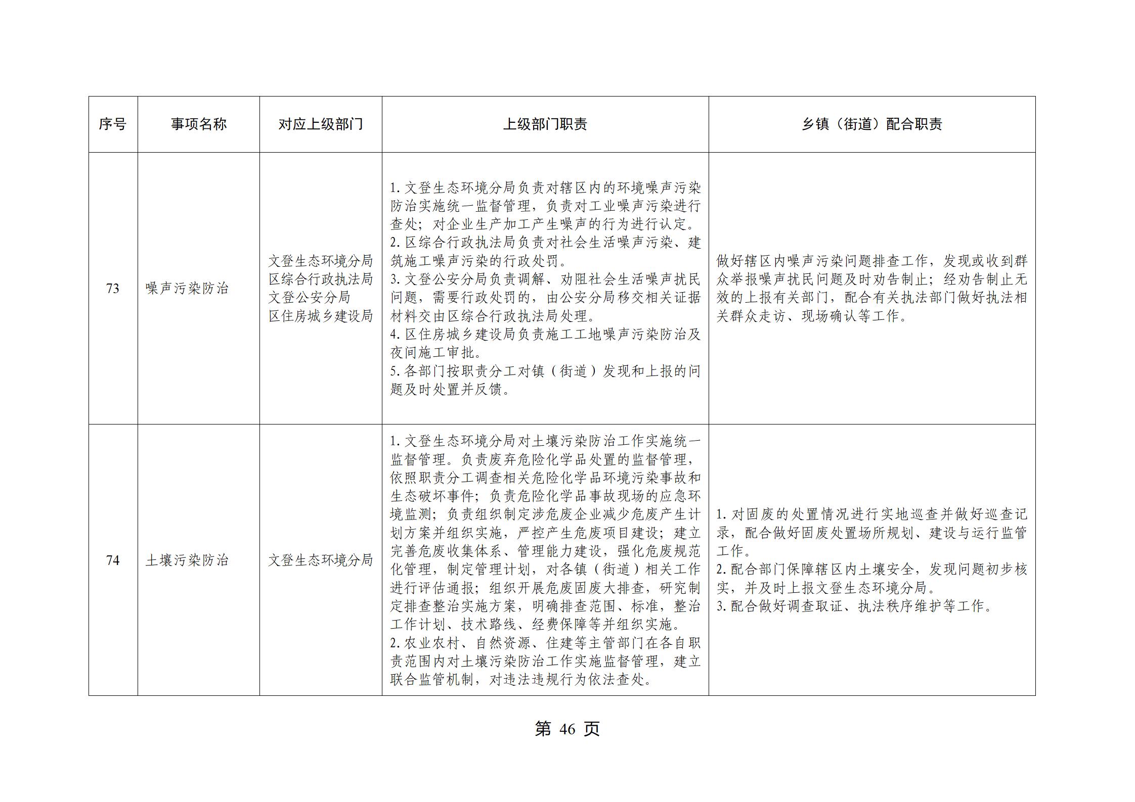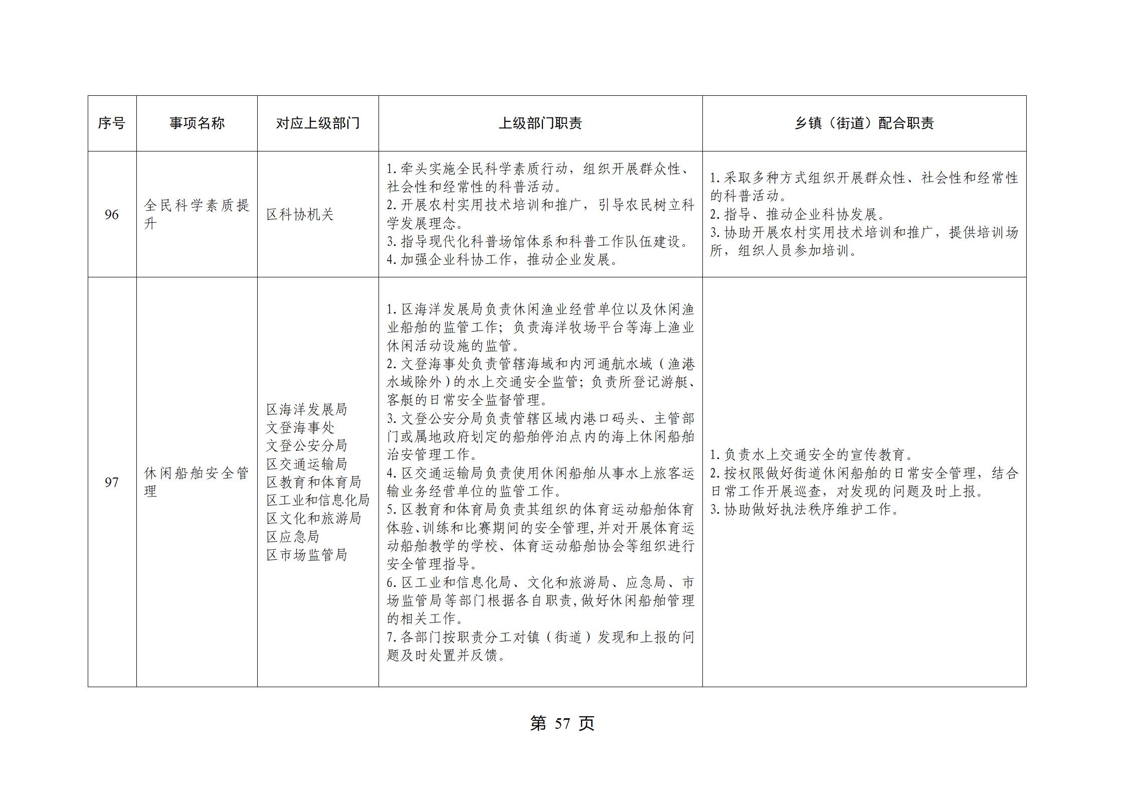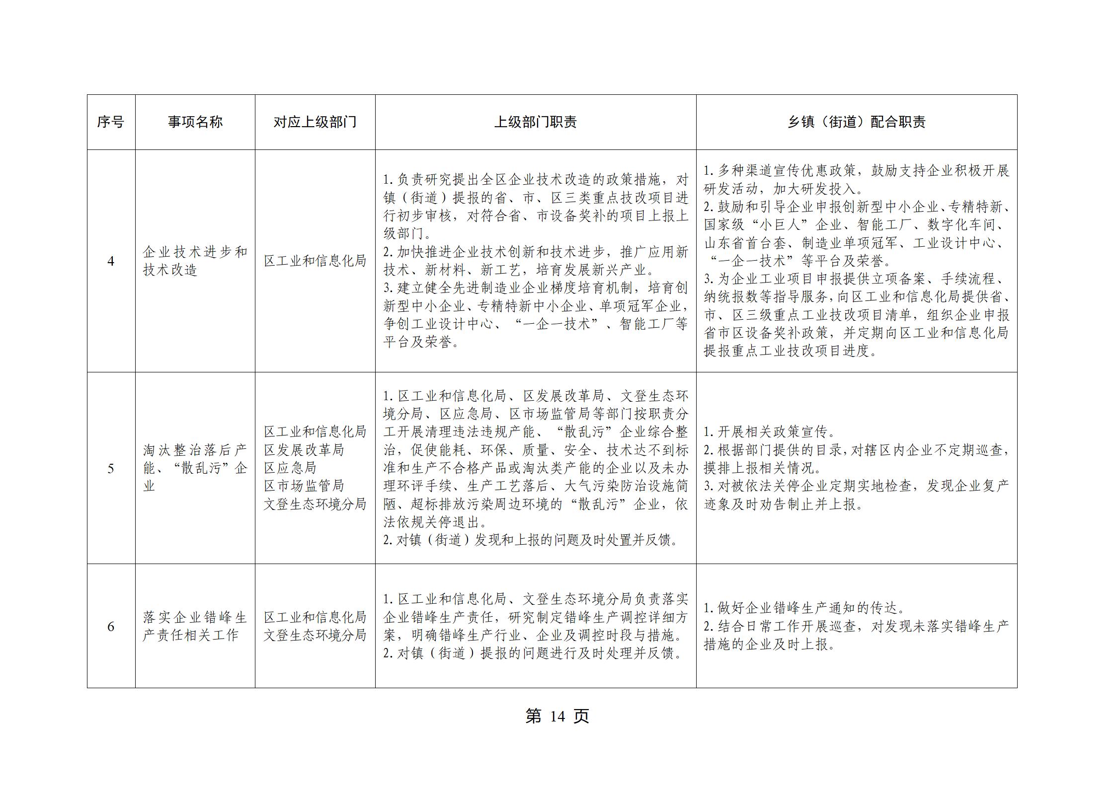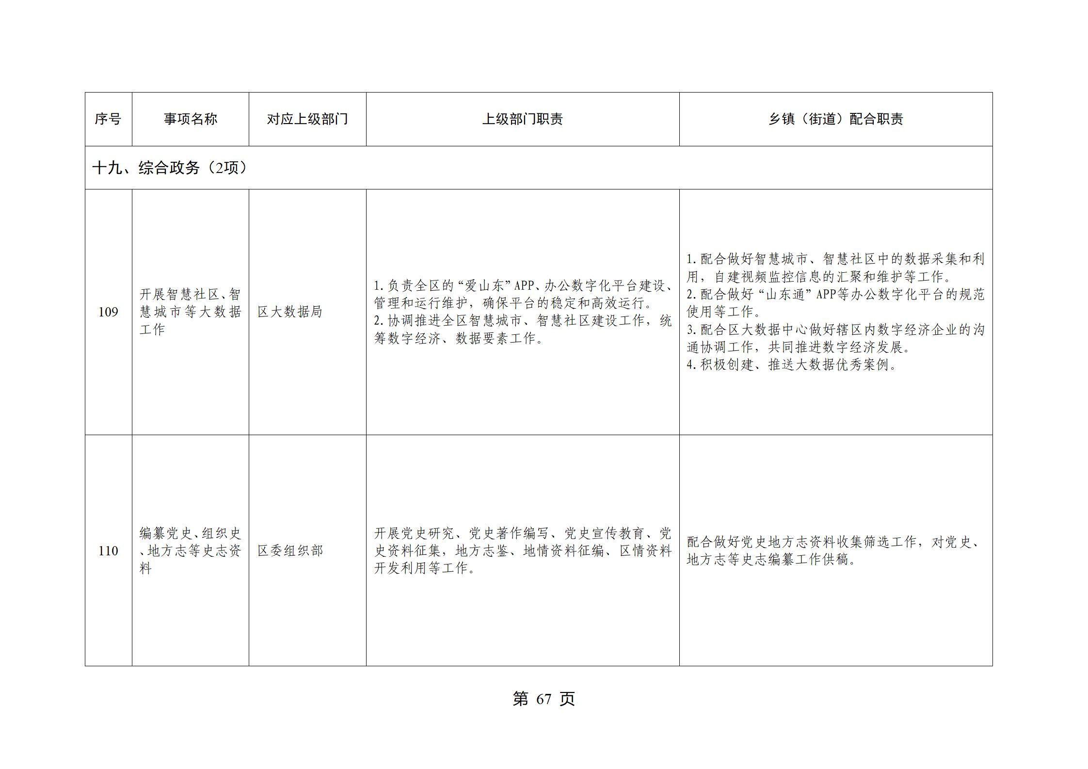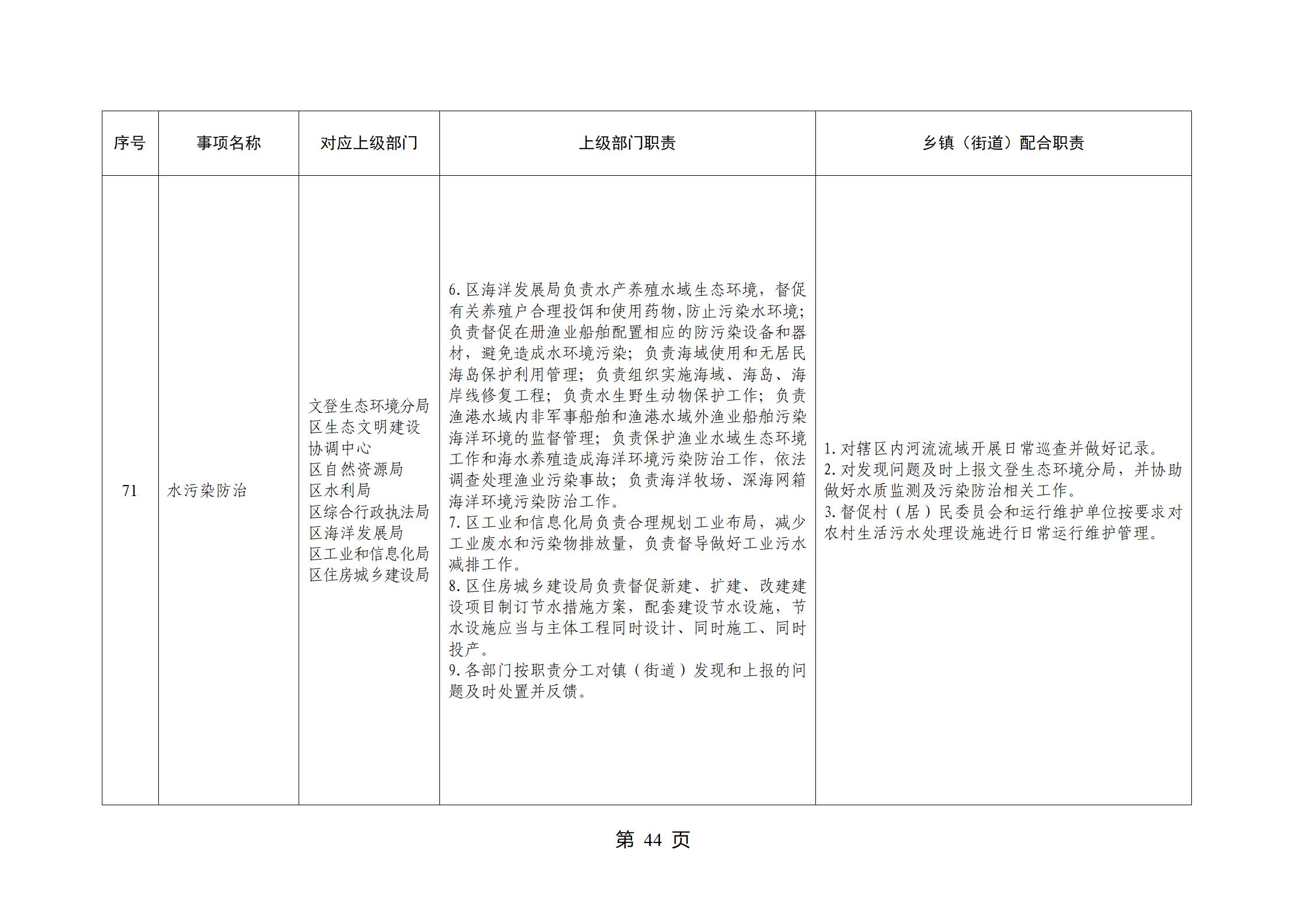 山东省威海市文登区环山街道履行职责事项清单