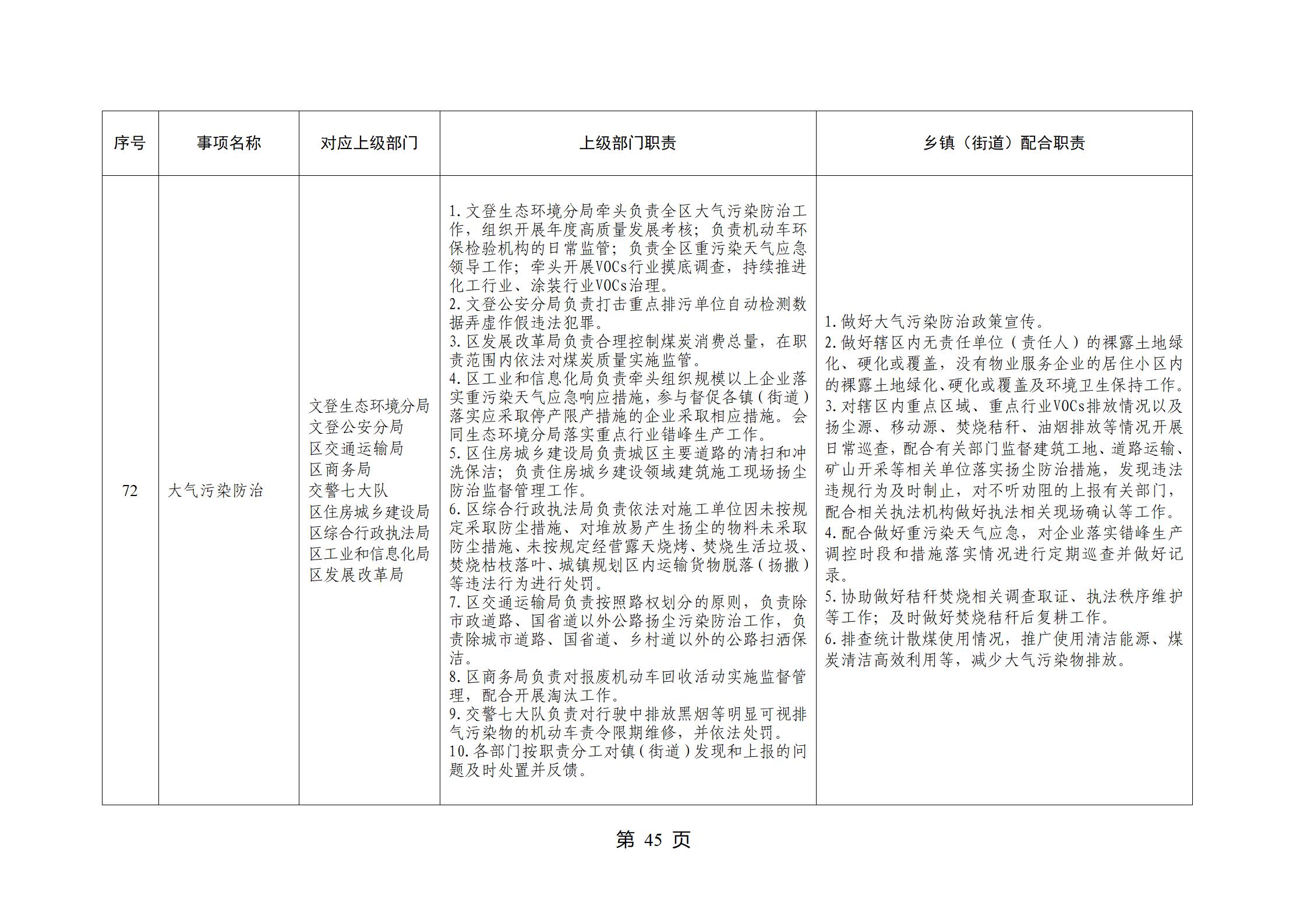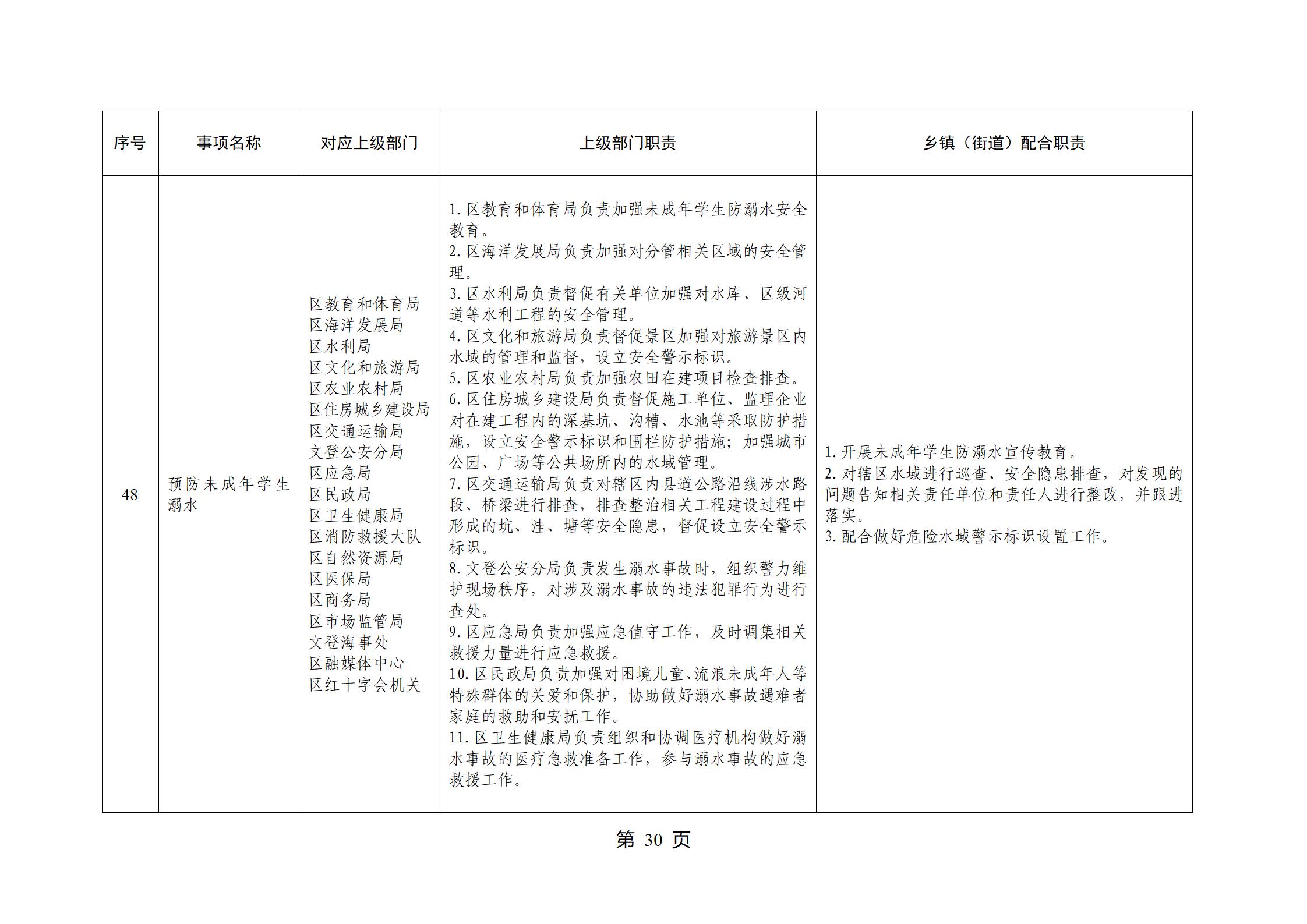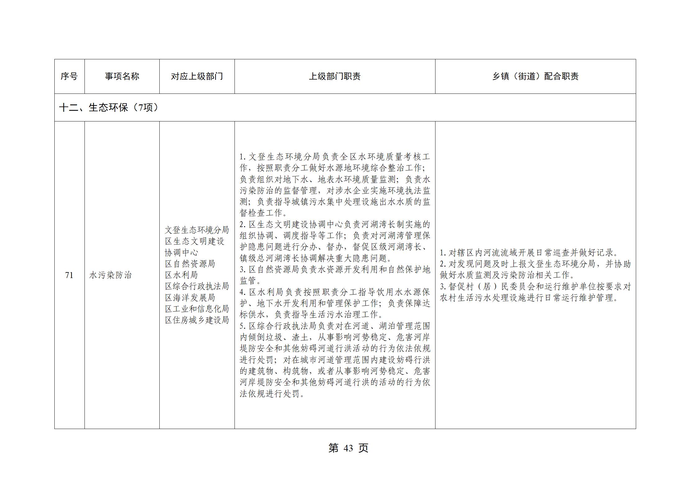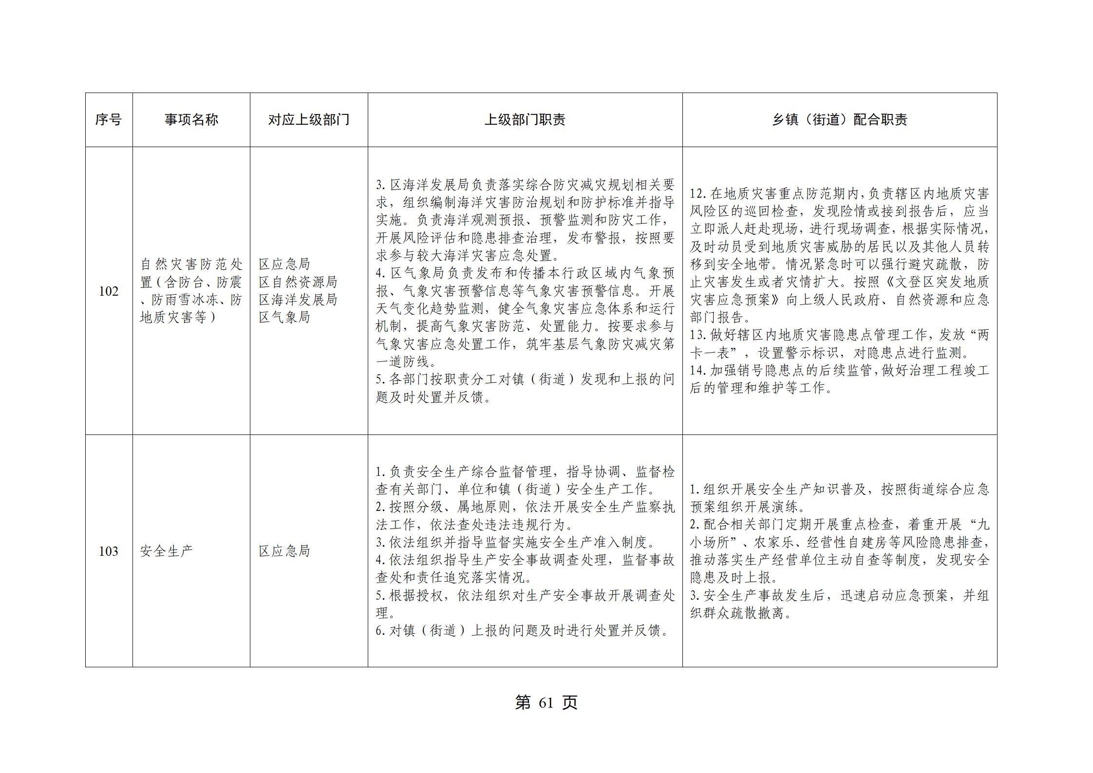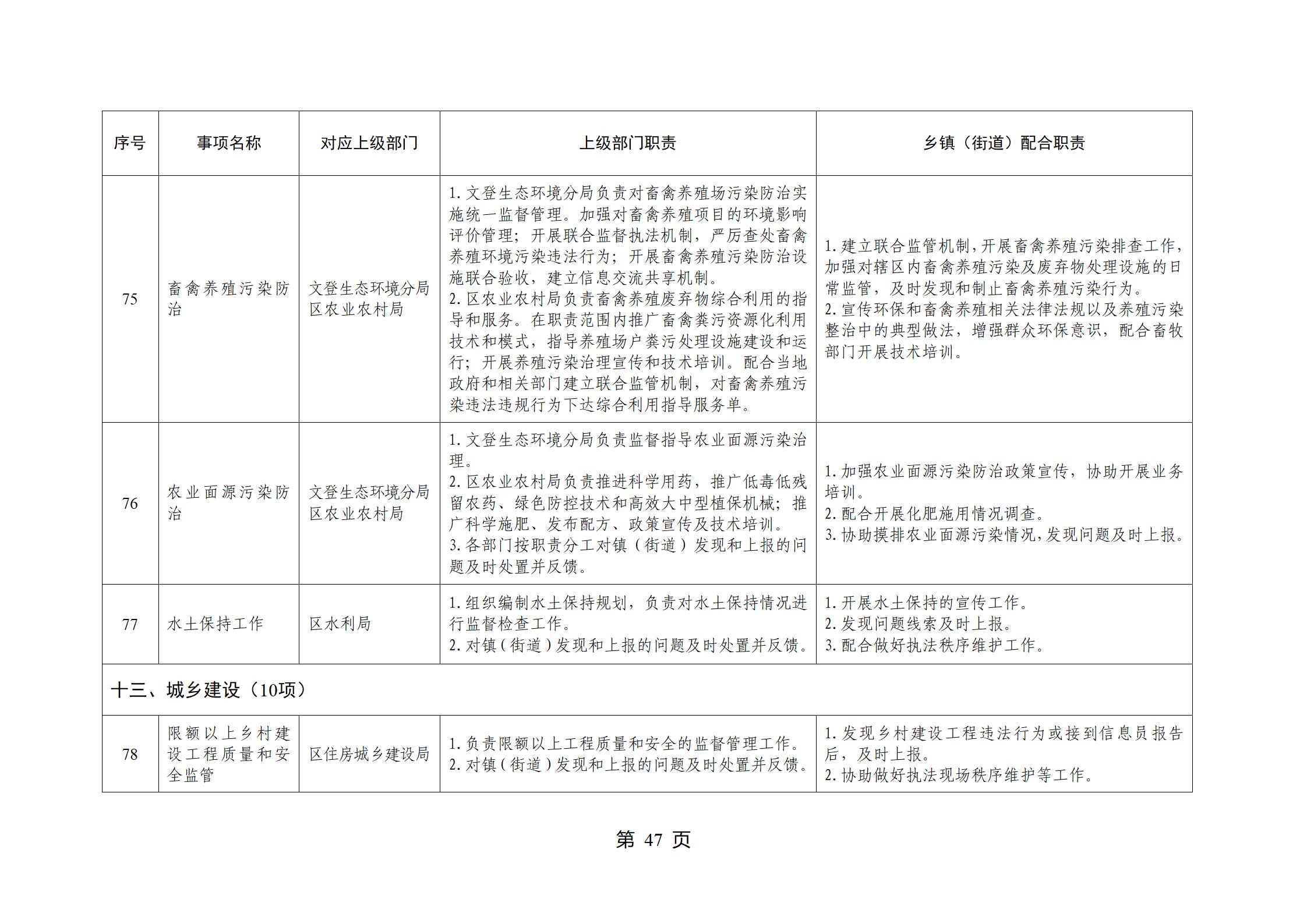 山东省威海市文登区环山街道履行职责事项清单