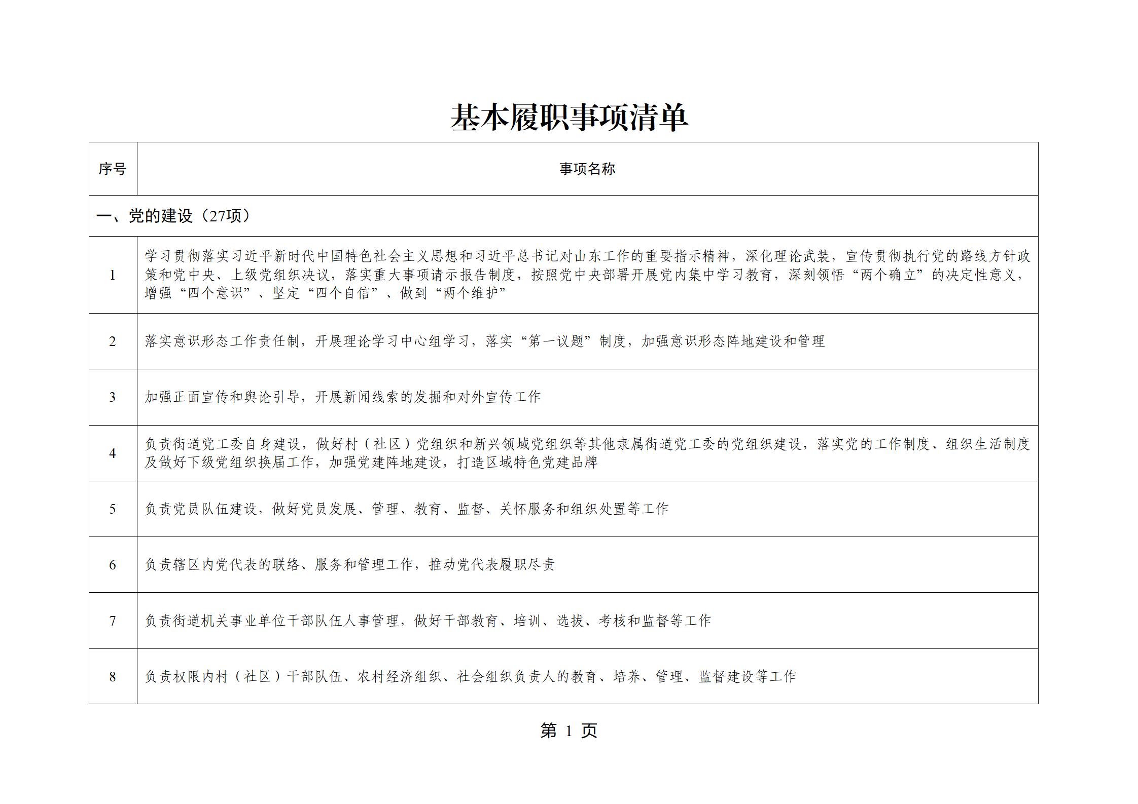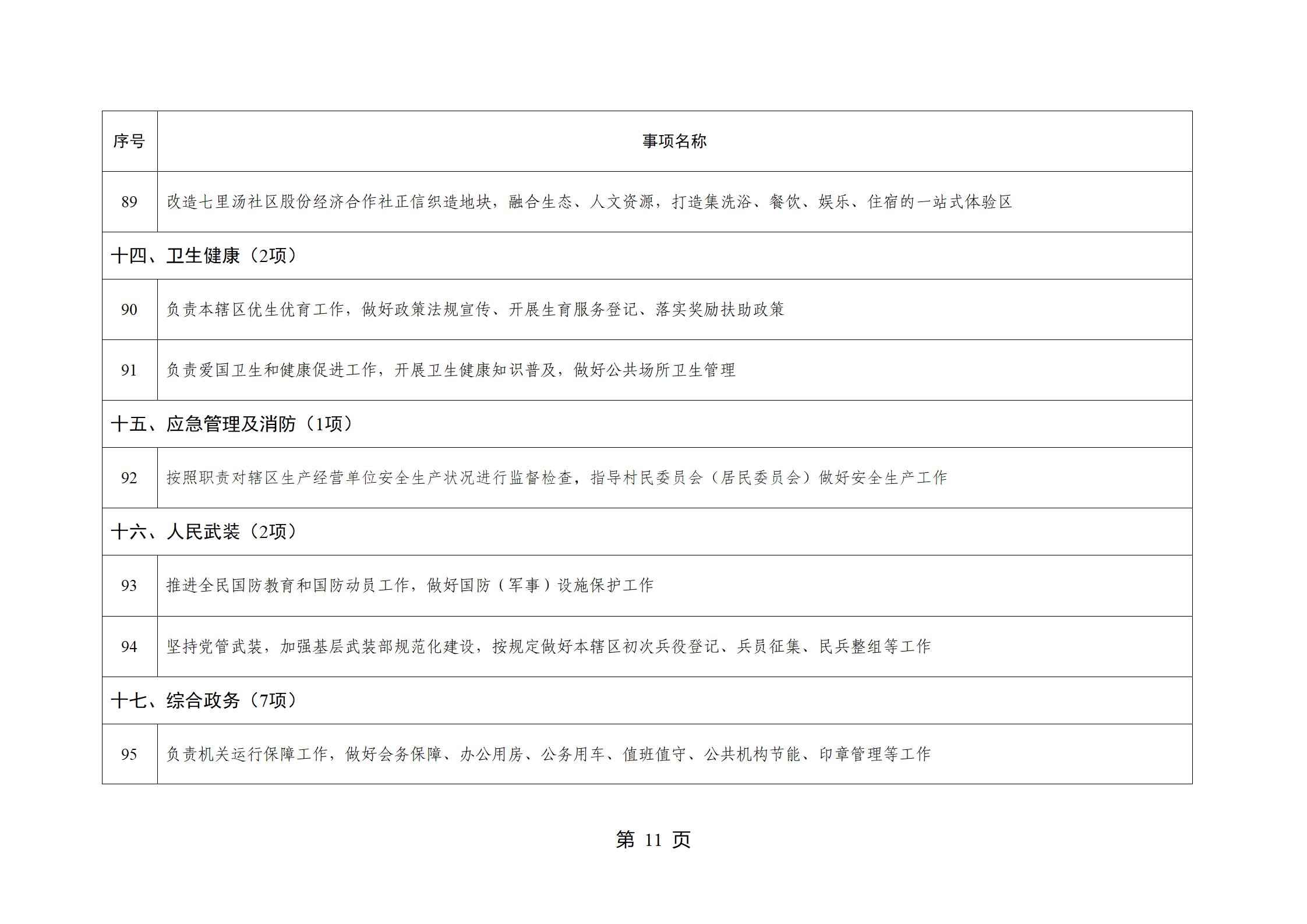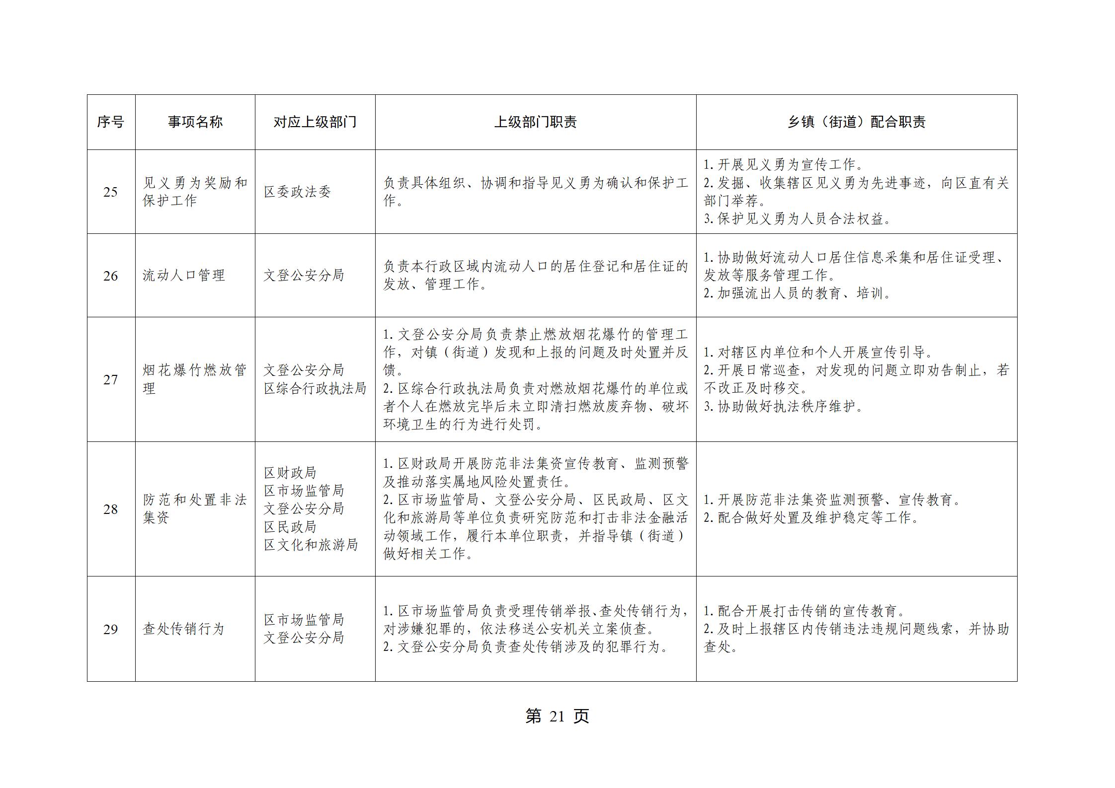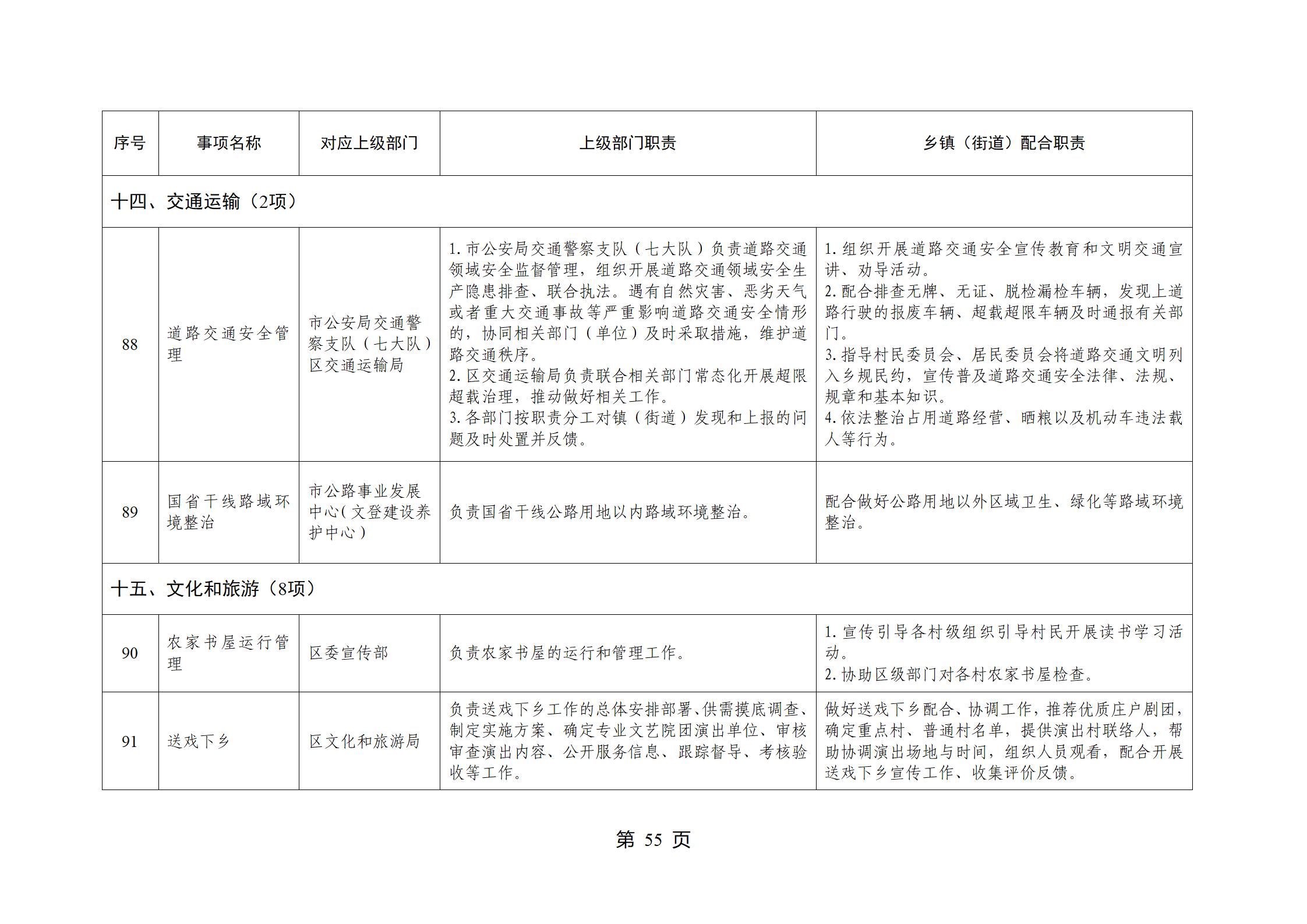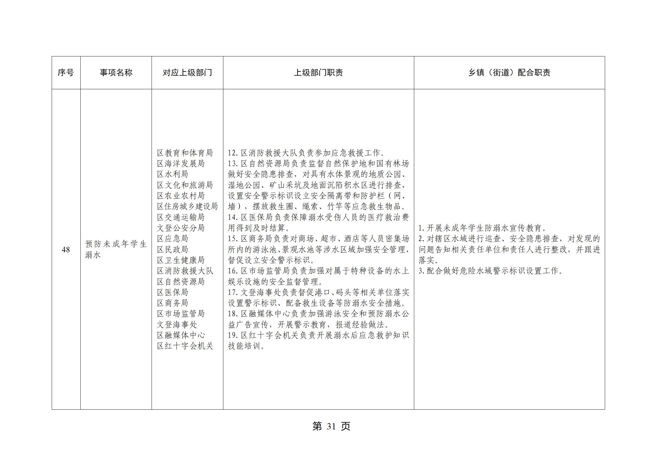 山东省威海市文登区环山街道履行职责事项清单