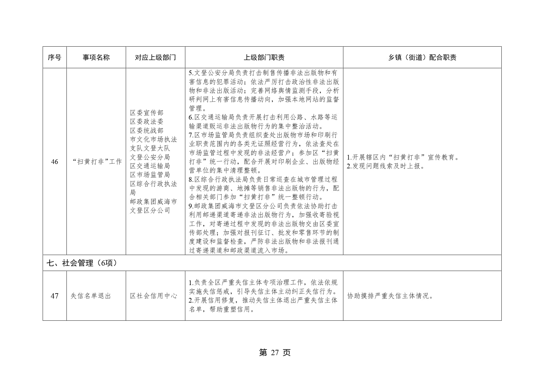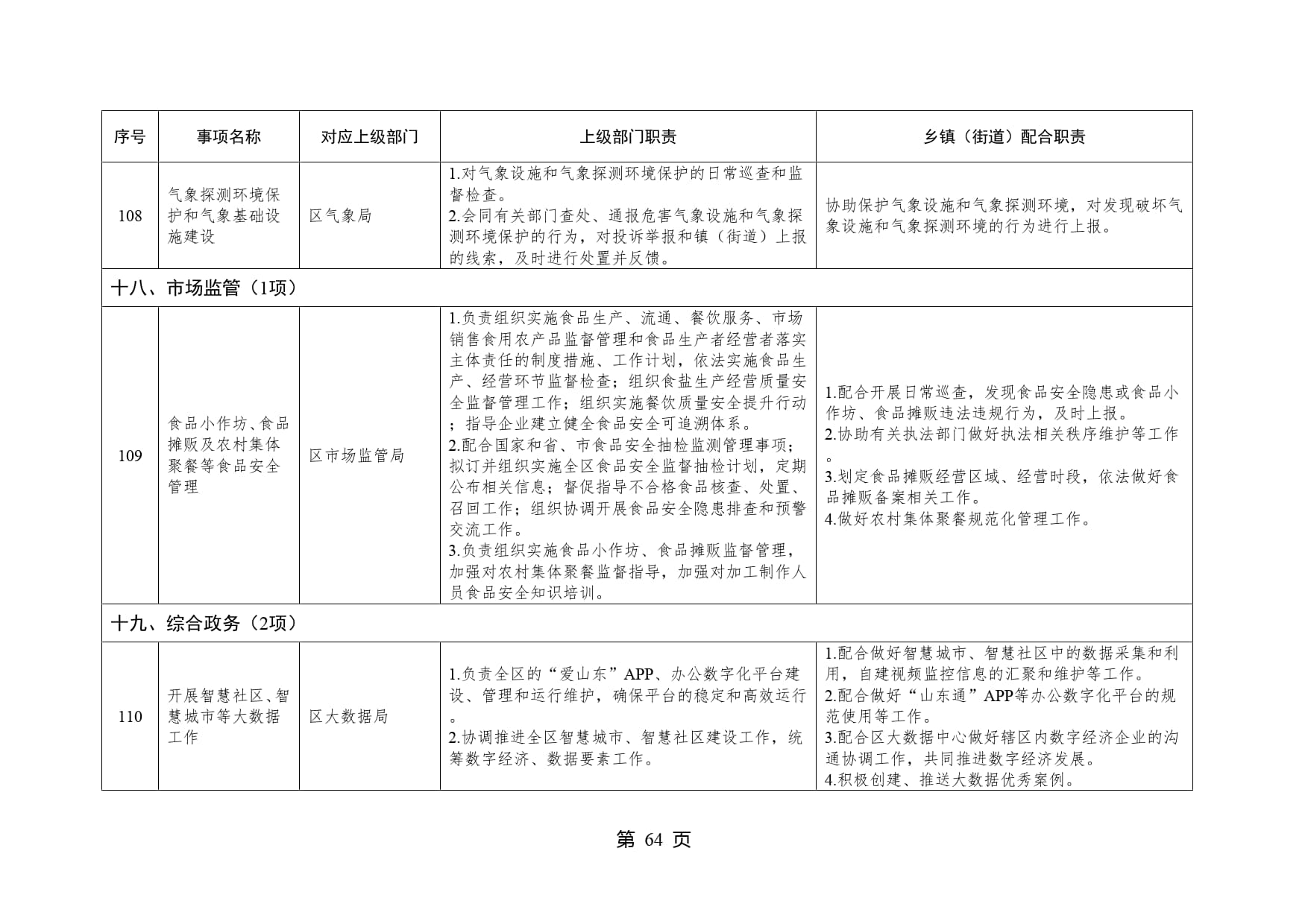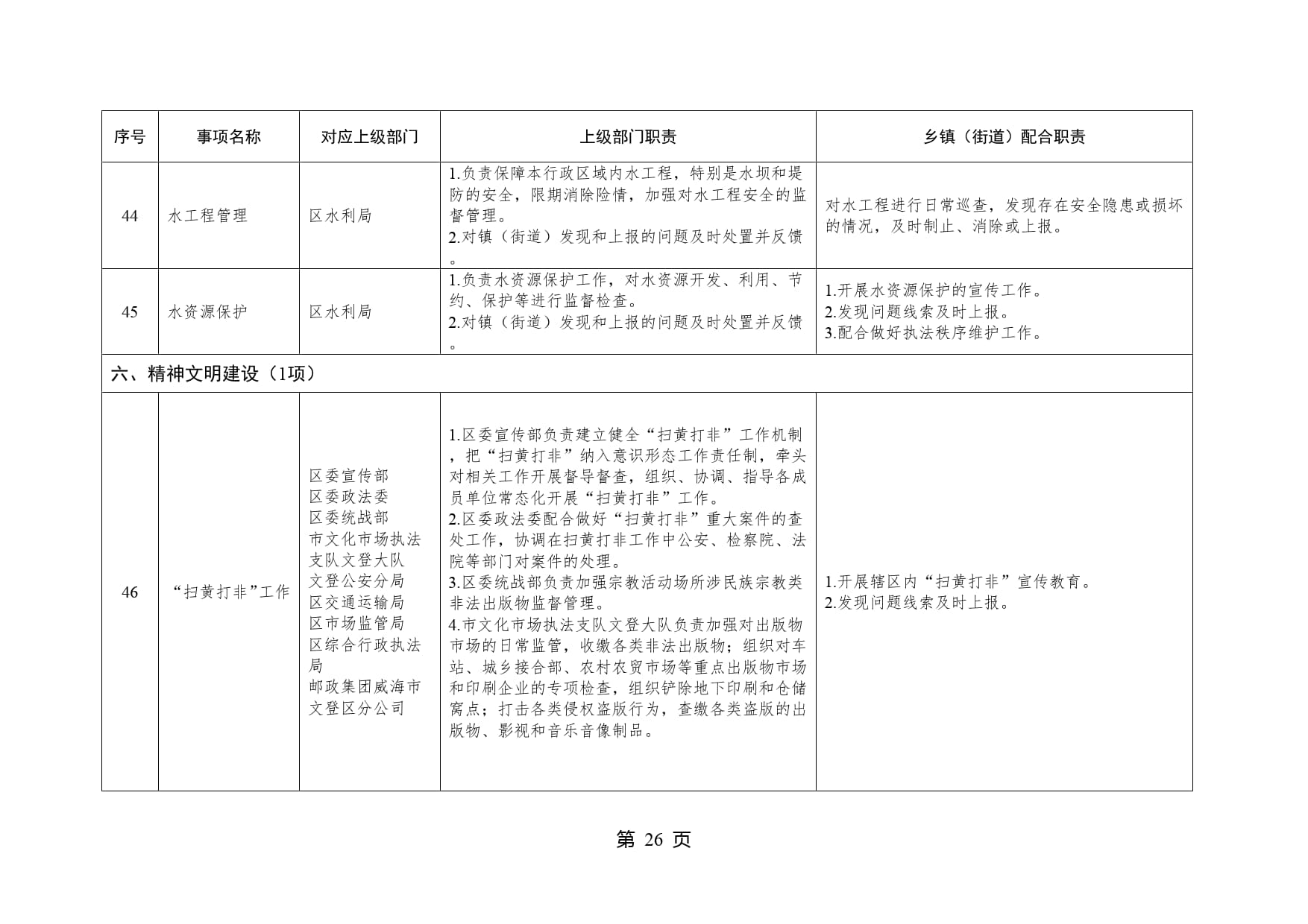 山东省威海市文登区泽库镇履行职责事项清单