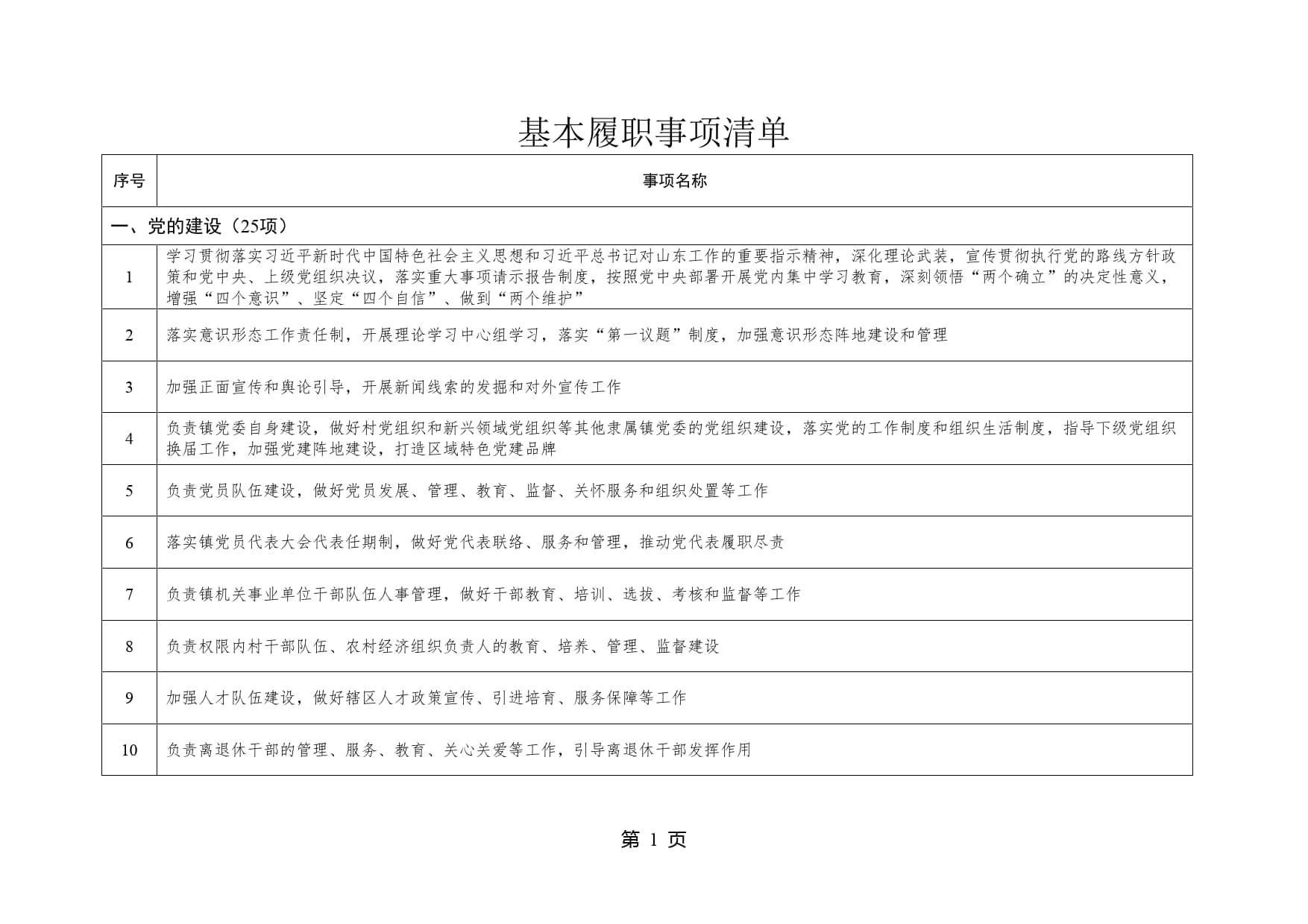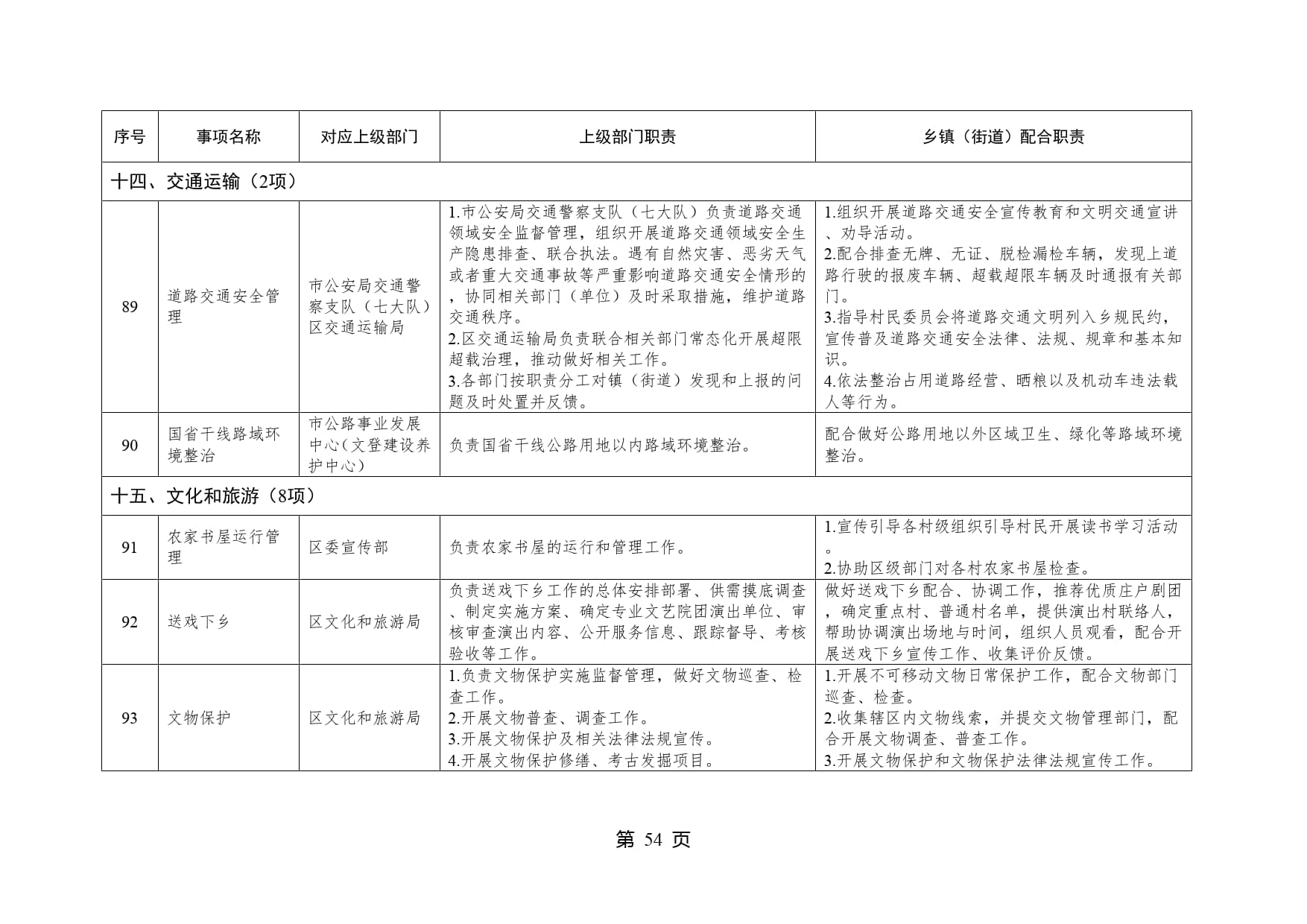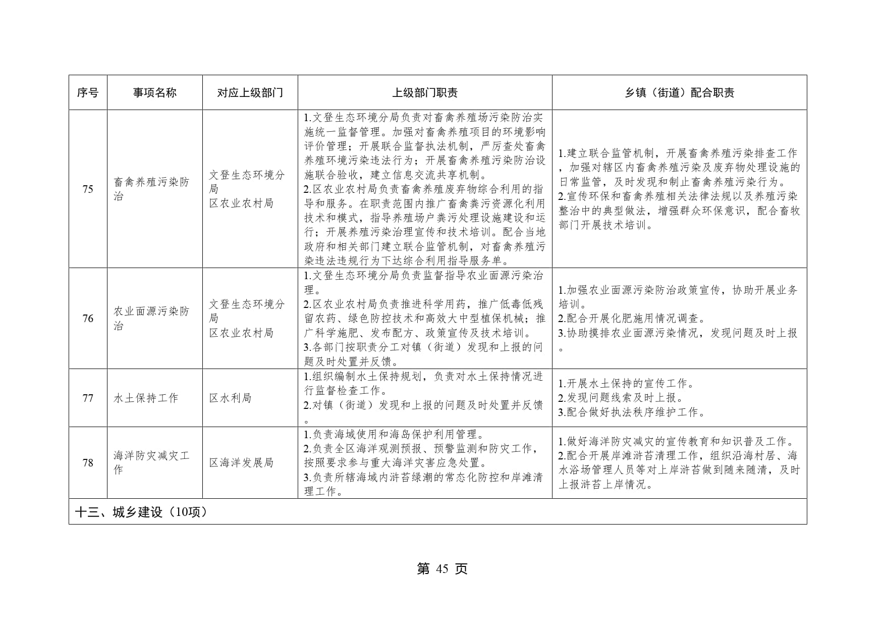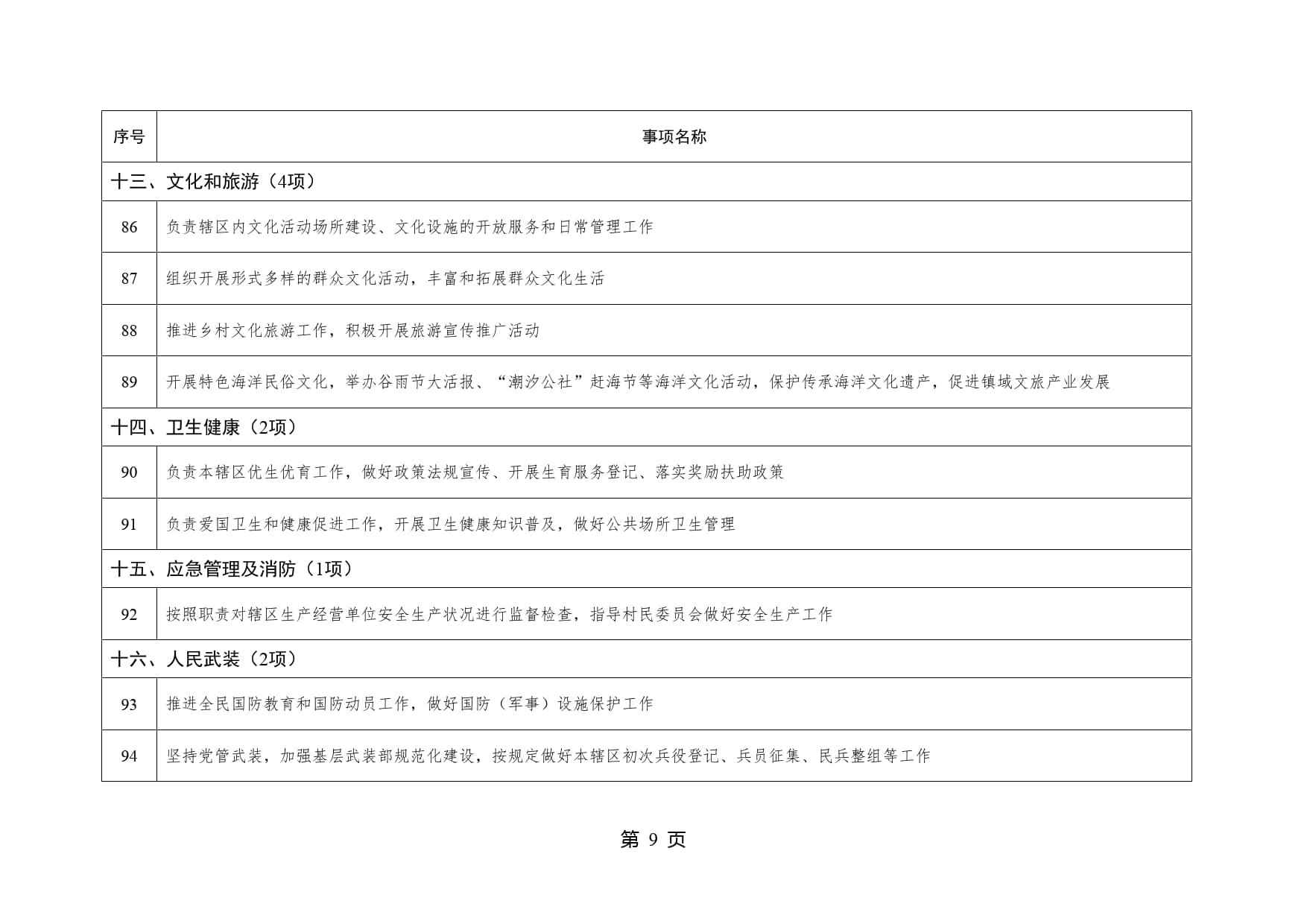 山东省威海市文登区泽库镇履行职责事项清单