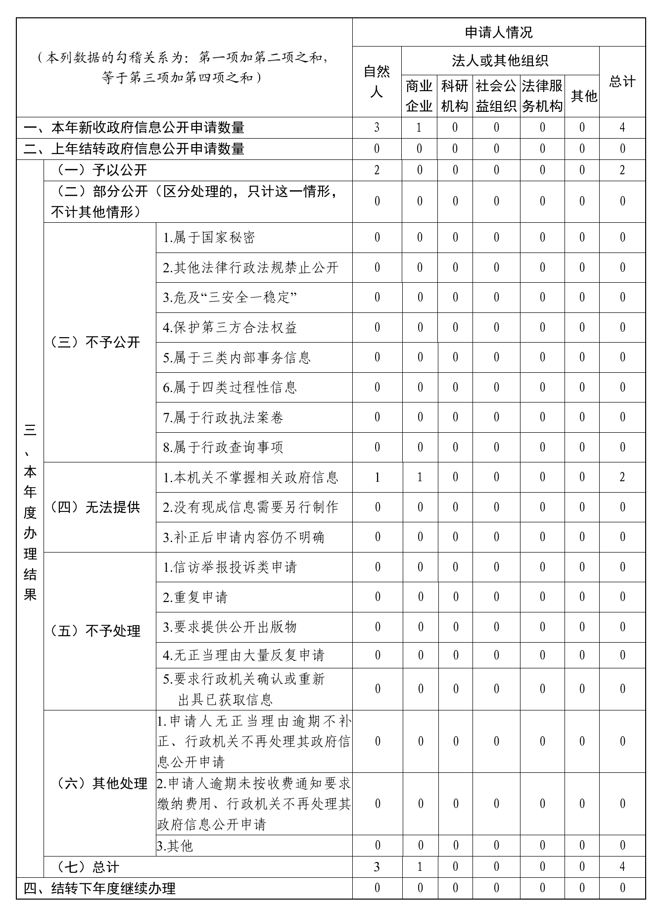 三、收到和处理政府信息公开申请情况