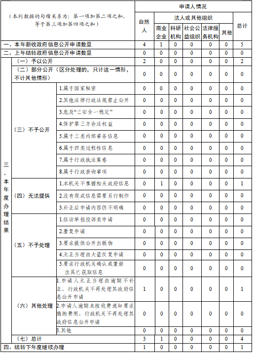 三、收到和处理政府信息公开申请情况