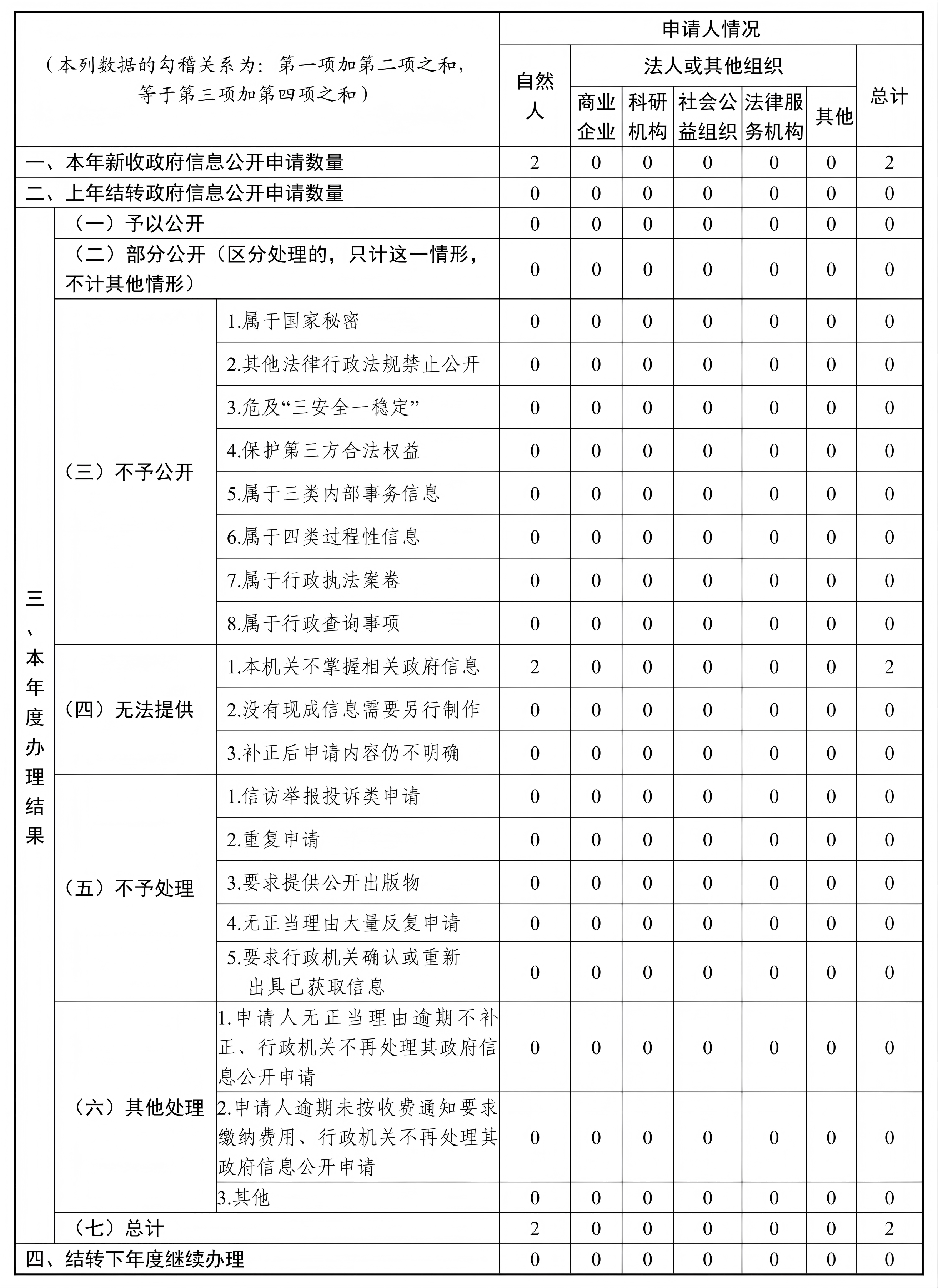 三、收到和处理政府信息公开申请情况