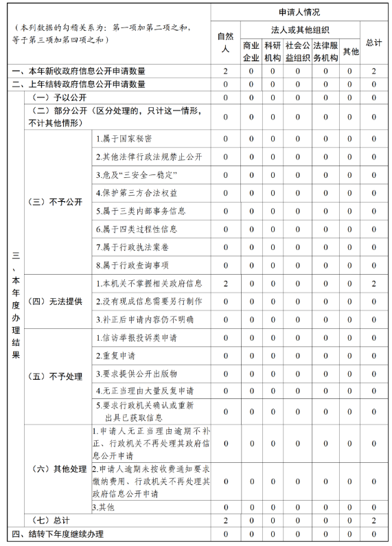 (二)依申请公开工作方面。依法依规做好政府信息公开工作,切实满足公众合理信息需求,2025年度,我局共受理政府信息公开申请2条,较去年增加2条,已全部按时办结,申请公开事项均为本机关不掌握事项。无因政府信息申请引发的行政复议、行政诉讼情况。