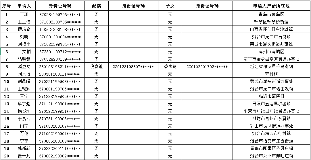 根据《威海市文登区住房保障租赁补贴实施办法》(威文住建通字[2025]7号)的规定,经过审核,下列家庭初步符合我区住房租赁补贴申请条件。现将申请人名单予以公示,请社会各界监督。