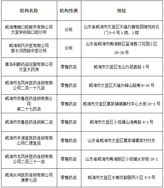 为加强我区定点医药机构协议管理,保障医保基金安全运行,根据《医疗机构医疗保障定点管理暂行办法》(国家医疗保障局令第2号)、《零售药店医疗保障定点管理暂行办法》(国家医疗保障局令第3号)、《山东省医药机构医疗保障协议管理经办规程(试行)》(鲁医保办发〔2025〕5号)和威海市文登区基本医疗保险定点医药机构医疗服务协议相关条款规定,现将近期解除医保服务协议的医药机构名单公布如下: