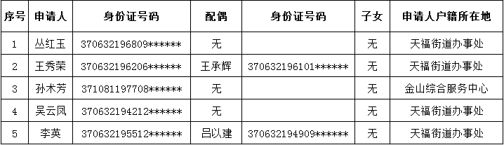 根据《威海市文登区住房保障租赁补贴实施办法》(威文住建通字[2025]7号)的规定,经过审核,下列家庭初步符合我区住房租赁补贴申请条件。现将申请人名单予以公示,请社会各界监督。