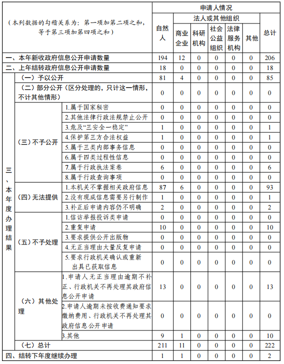 三、收到和处理政府信息公开申请情况