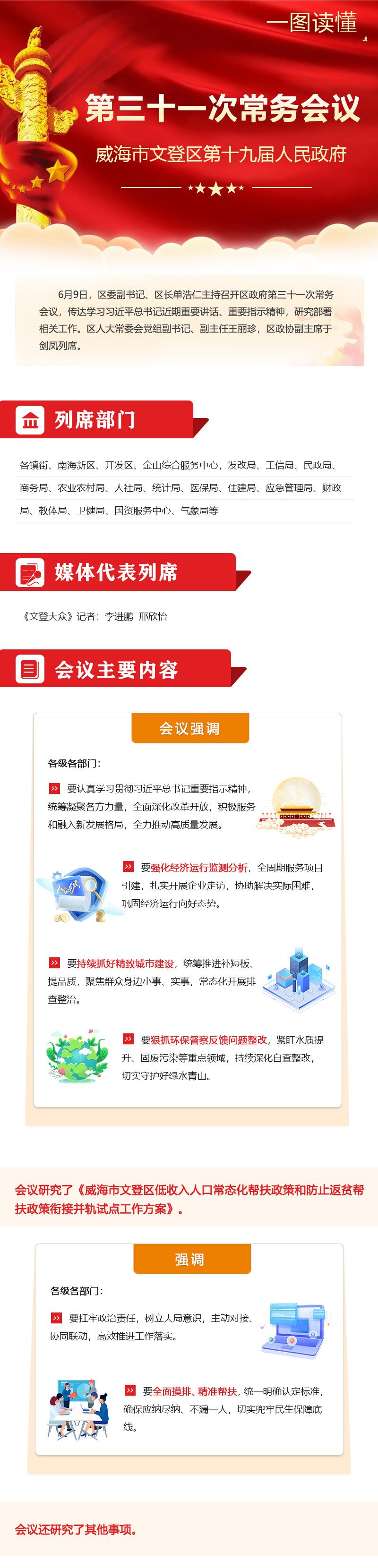 6月9日,区委副书记、区长单浩仁主持召开区政府第三十一次常务会议,传达学习习近平总书记近期重要讲话、重要指示精神,研究部署相关工作。区人大常委会党组副书记、副主任王丽珍,区政协副主席于剑凤列席。