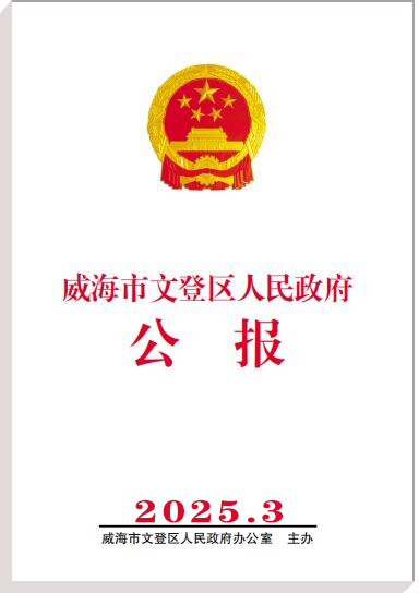《威海市文登区人民政府公报》由威海市文登区人民政府主管主办,是区政府发布政令、信息公开的法定载体。《威海市文登区人民政府公报》主要全面、系统、准确地公布区政府和区政府办公室文件、区政府和部门规范性文件。《威海市文登区人民政府公报》(含电子版)版权归威海市文登区人民政府所有。公众、学者、法律工作者和其他各类用户可以登陆威海市文登区人民政府网站政府公报专栏免费下载相关资料,用于单位或个人的学习和研究。未经许可,不得用于任何以盈利为目的的商业应用,一旦发现,威海市文登区人民政府保留追究其法律责任的权利。